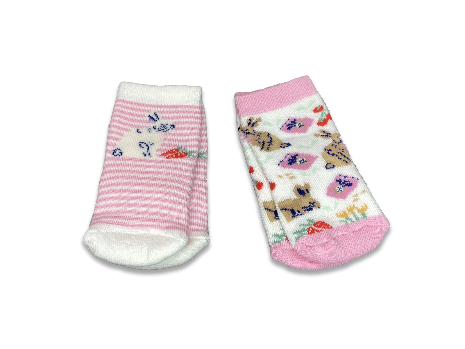 Δύο (2) Ζευγάρια Καλτσούλες Βρεφικές Χειμωνιάτικες με Σχέδιο Λαγουδάκια Ροζ – 53396