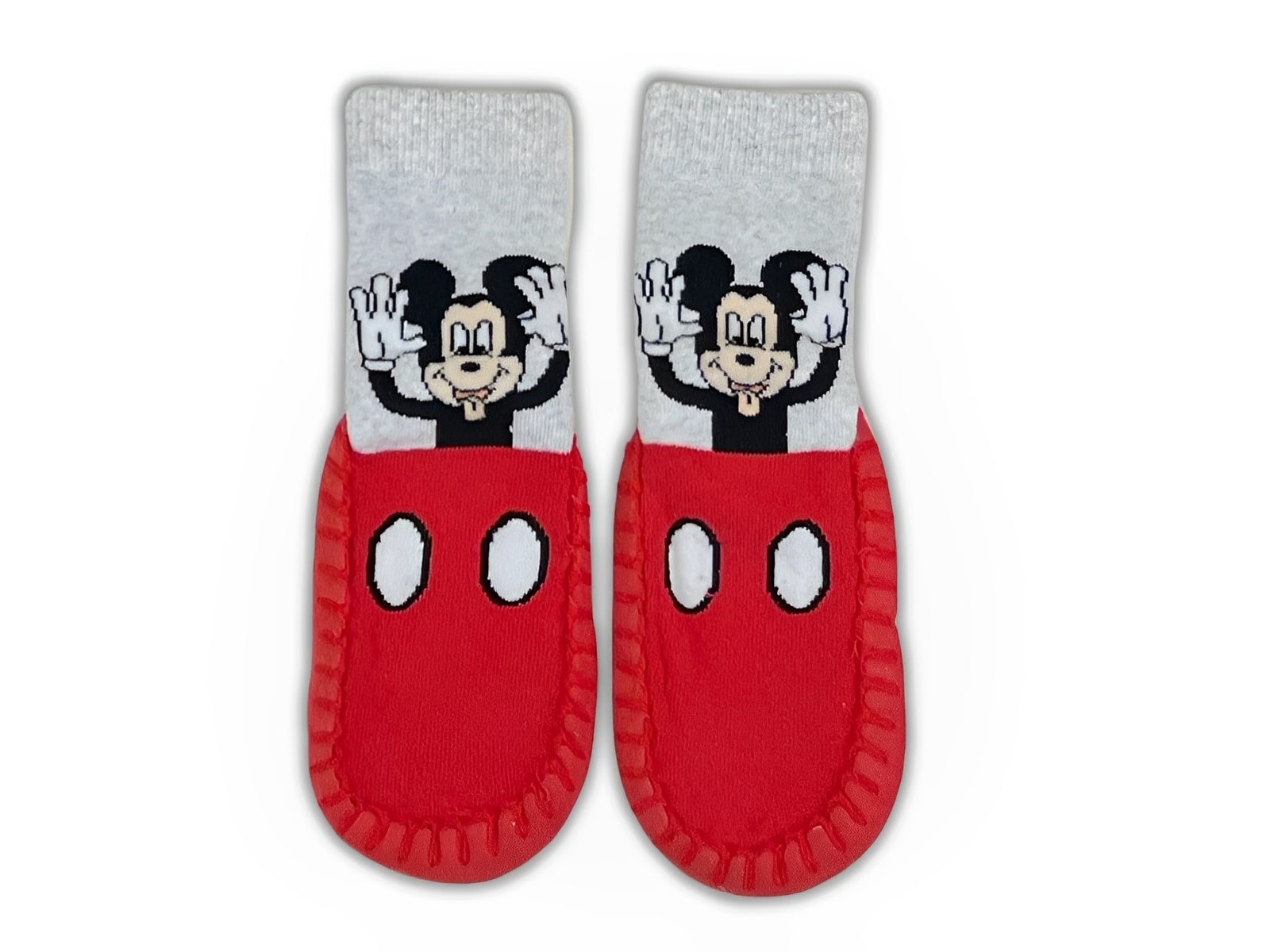 Καλτσοπάπουτσα με αντιολισθητικό πάτο από την εταιρία Disney με τον αγαπημένο ήρωα των παιδιών Μίκι Μάους (Mickey Mouse) . Είναι σε γκρι χρώμα με κόκκινο πάτο.