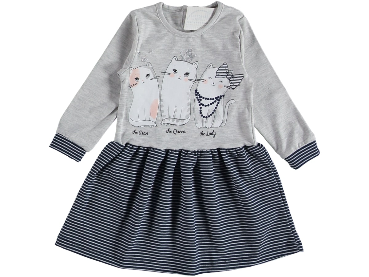 Φορεματάκι Μακρυμάνικο με Σχέδιο Γατούλες “The Star, The Queen, The Lady” Γκρι