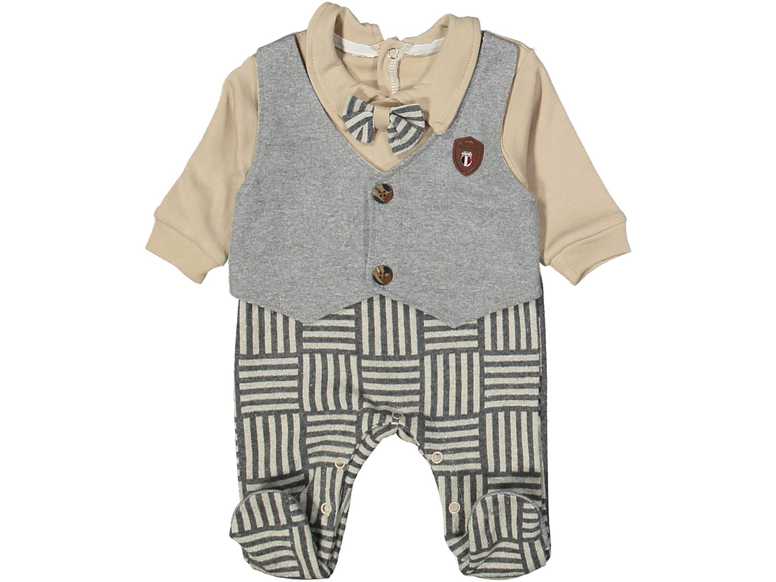 Φορμάκι Εξόδου Βρεφικό Ενιαίο με Γιλέκο και Παπιγιόν – Γκρι (82367)