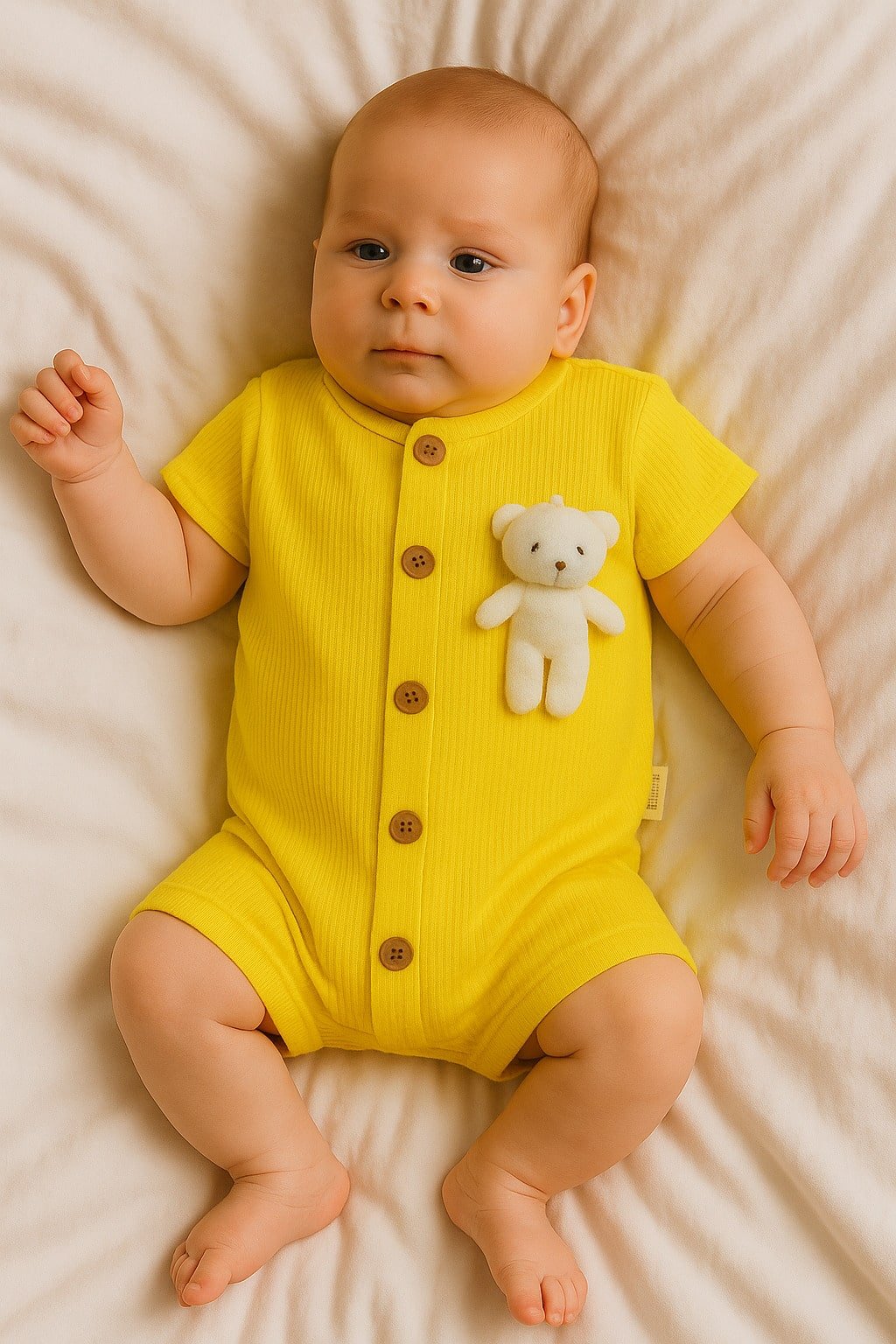 Φορμάκι Κοντομάνικο με Αρκουδάκι 3D Μονόχρωμο – Κίτρινο