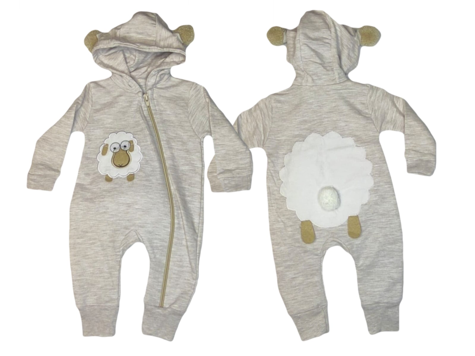 Φορμάκι με κουκούλα και αποσπώμενα αυτάκια με velcro σε σχέδιο προβατάκι με ουρίτσα 3D στο πίσω μέρος σε μπεζ χρώμα. Το φορμάκι έχει άνοιγμα με φερμουάρ.