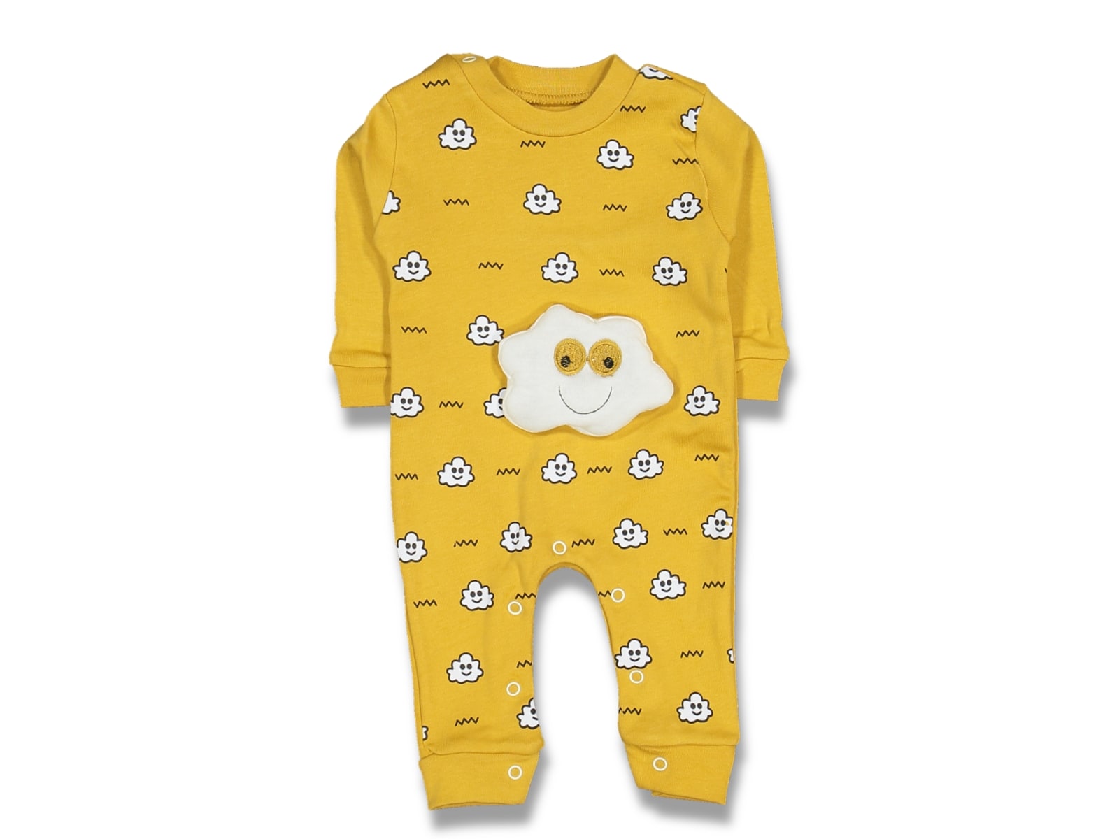 Φορμάκι με σχέδιο 3D συννεφάκια σε μουσταρδί χρώμα. Στο τελείωμά του το φορμάκι έχει ανοιχτά ποδαράκια και άνοιγμα με τρουκς στο κάτω μέρος, για εύκολη αλλαγή πάνας.