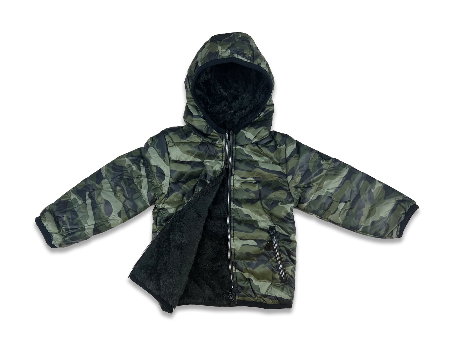 Αγορίστικο αντιανεμικό-αδιάβροχο μπουφανάκι από την εταιρία Joyce σε χακί χρώμα παραλλαγής το οποίο έχει κουκούλα και άνοιγμα με φερμουάρ. Διαθέτει ενισχυμένη γούνινη επένδυση και έχει επίσης δύο τσεπούλες που ανοίγουν και αυτές με φερμουάρ. Είναι ιδανικό για τις κρύες βόλτες!