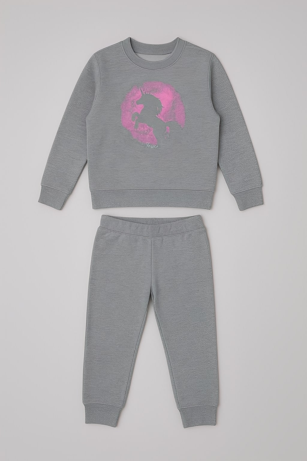 Joyce Παιδικό Σετ Φόρμες Χοντρές Μπλούζα και Παντελόνι με Σχέδιο Μονόκερος – Γκρι (104912)