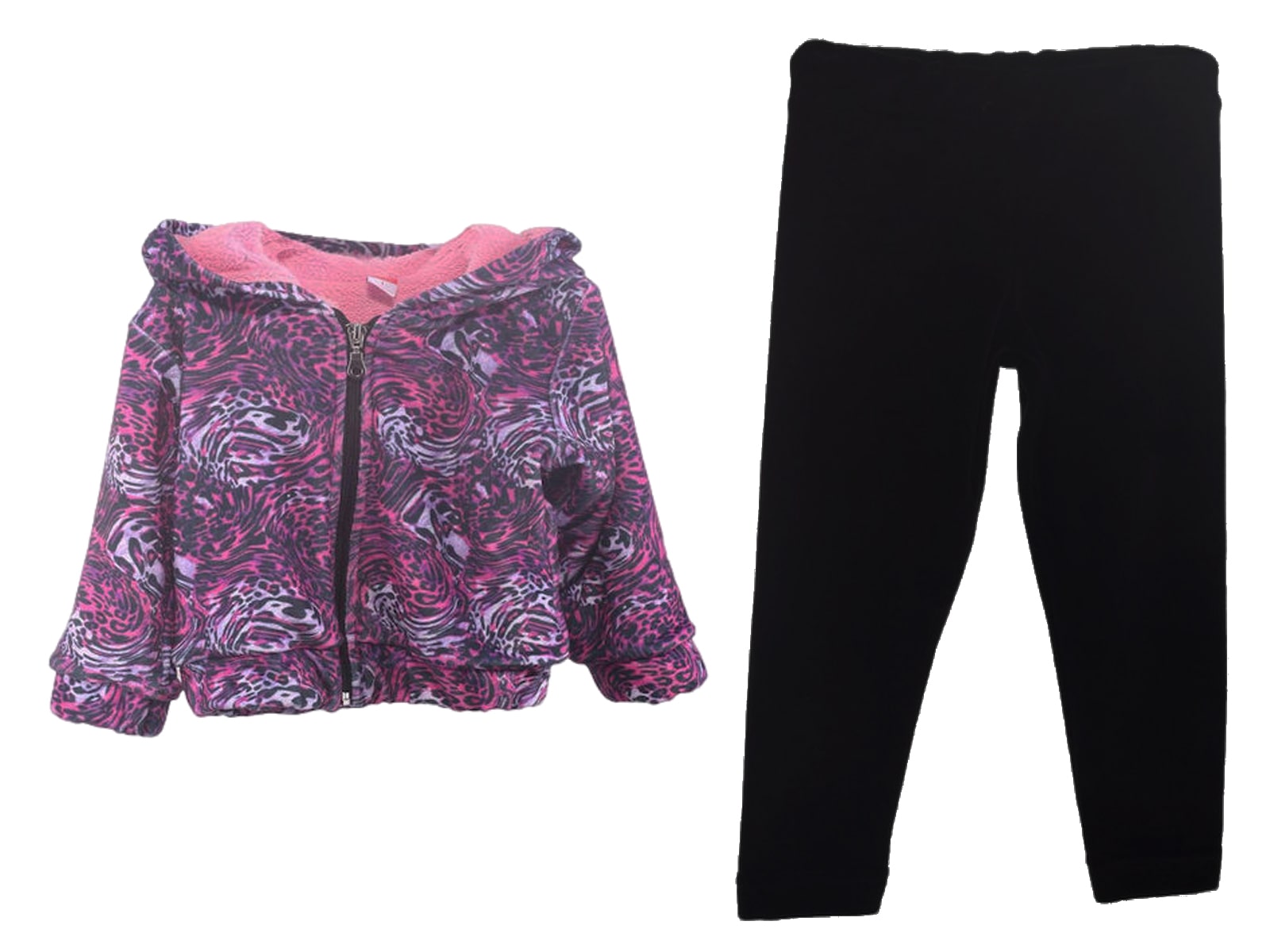 Το σετ αποτελείται από χοντρή παιδική ζακέτα και παντελόνι κολάν και είναι χειμερινό, με εσωτερική επένδυση χνούδι φλις (fleece), από την εταιρία Joyce. Η ζακέτα είναι σε μοβ χρώμα, έχει σχέδιο εξωτερικά και επένδυση χνούδι φλις (fleece) ροζ εσωτερικά. Το παντελόνι είναι βελουτέ κολάν σε μαύρο χρώμα έχει λάστιχο περιμετρικά στη μέση.