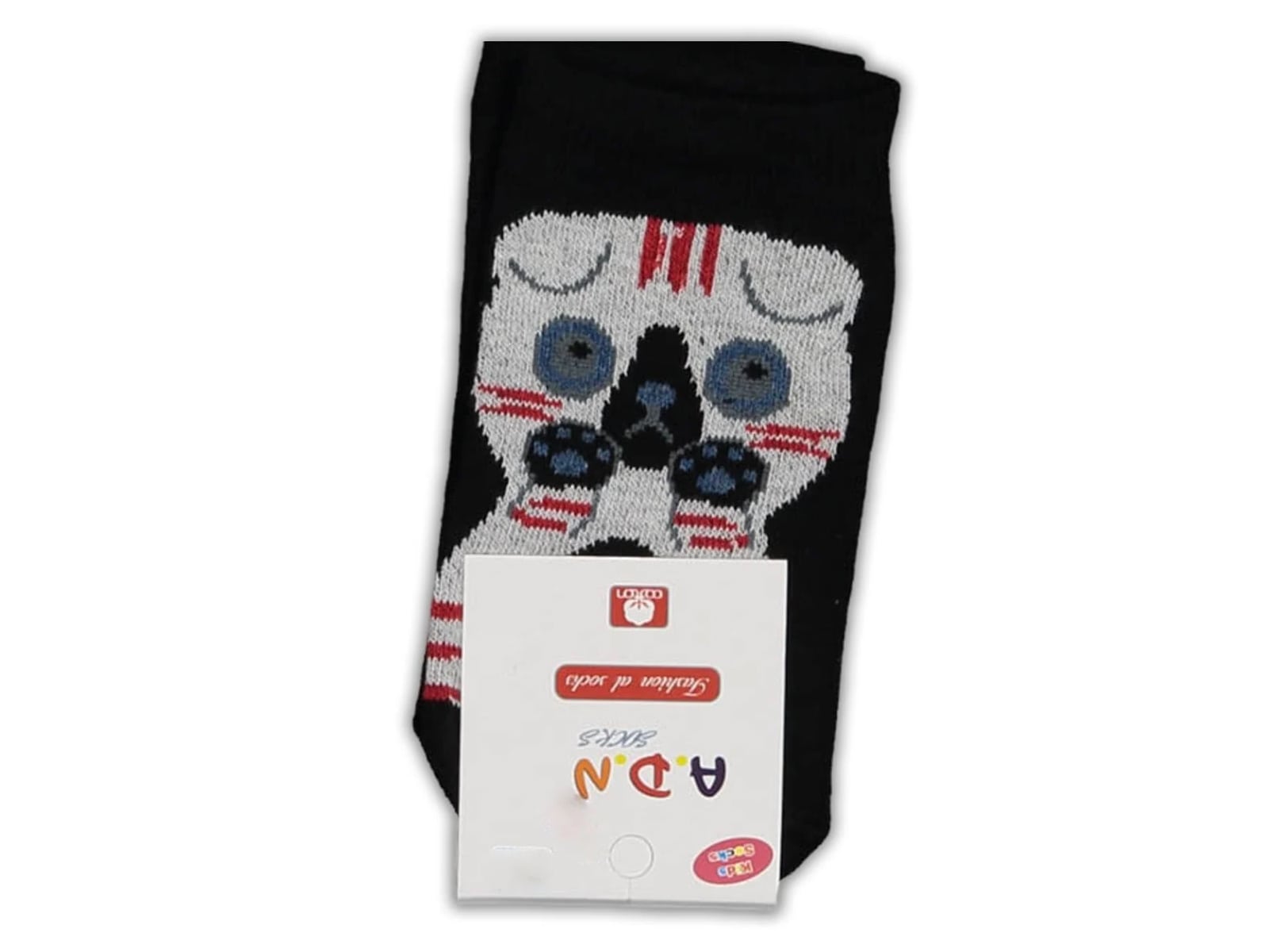 Καλτσούλες Παιδικές Σοσόνια με Σχέδιο Γατάκι – Μαύρες (100697)