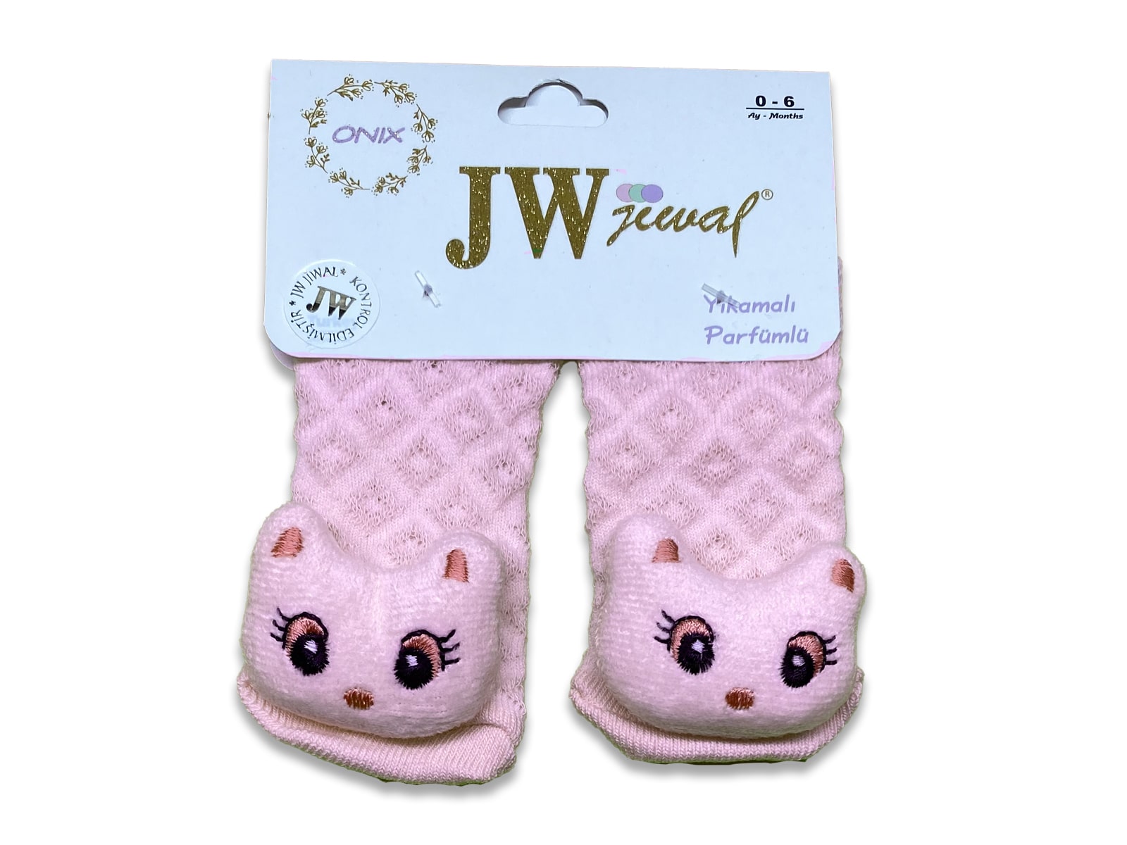 Καλτσούλες βρεφικές με τρισδιάστατο σχεδιάκι γατάκι με ανοιχτά μάτια σε ροζ χρώμα. Κατάληλες για ηλικίες από 0 έως 6 μηνών.