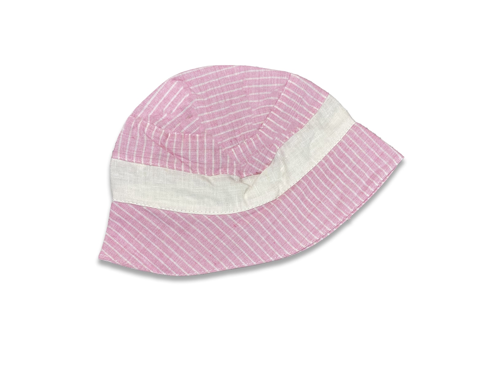 Καπέλο τύπου bucket από βαμβακερό μακό ύφασμα με σχέδιο γραμμούλες σε ροζ χρώμα. Για ηλικίες 0-12 μηνών