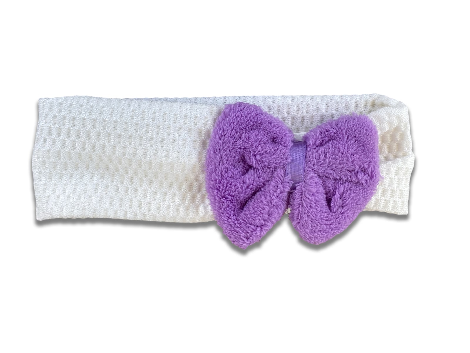 Κορδέλα για το κεφαλάκι με σχέδιο φιογκάκι μοβ.