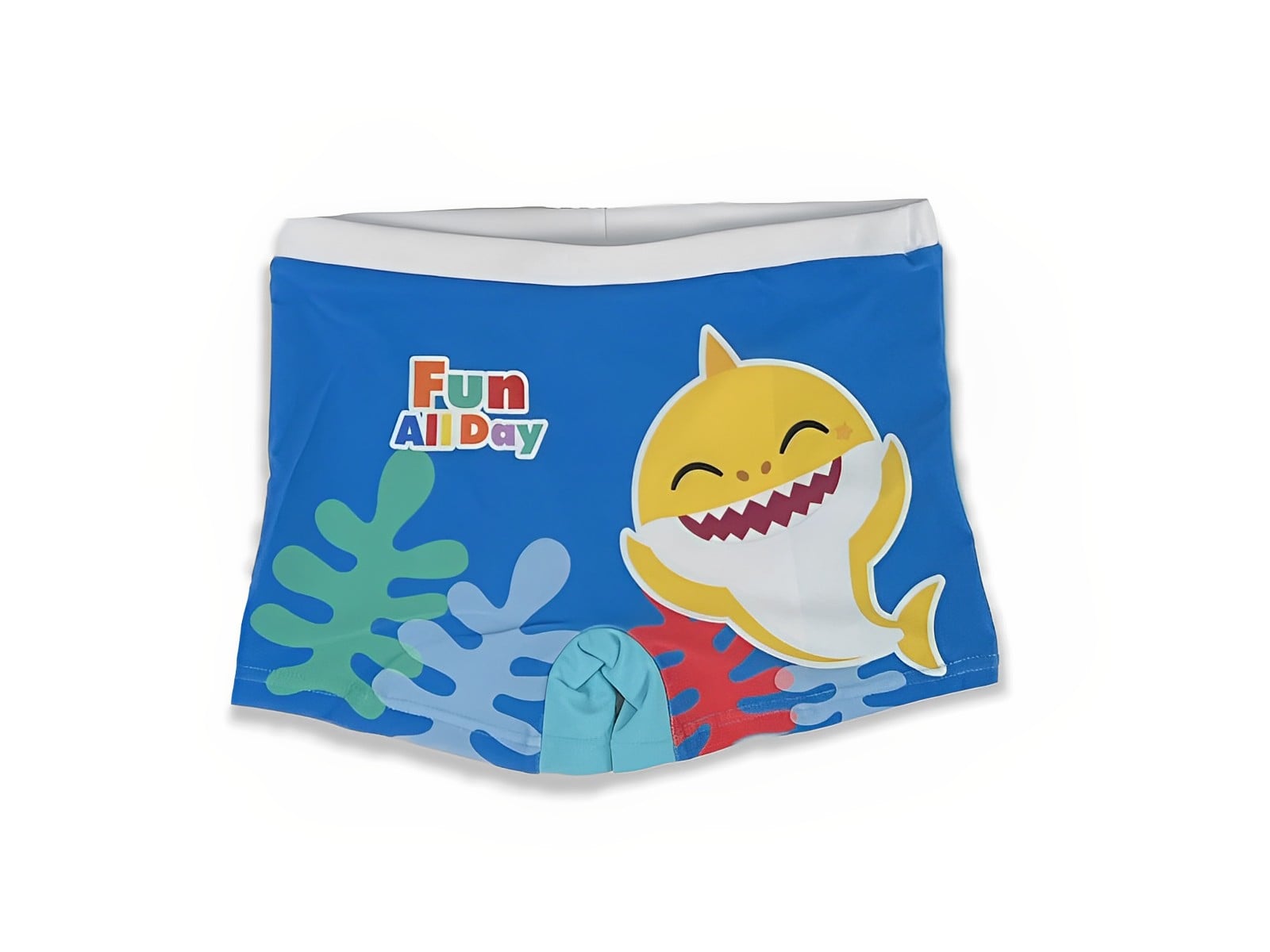 Το μαγιό αυτό είναι τύπου μπόξερ (boxer) με λάστιχο στη μέση για καλύτερη εφαρμογή, Είναι σε μπλε χρώμα και έχει σχέδιο το αγαπημένο καρχαριάκι (Baby Shark). Είναι ιδανικό για την παραλία, την πισίνα αλλά και για το κολυμβητήριο