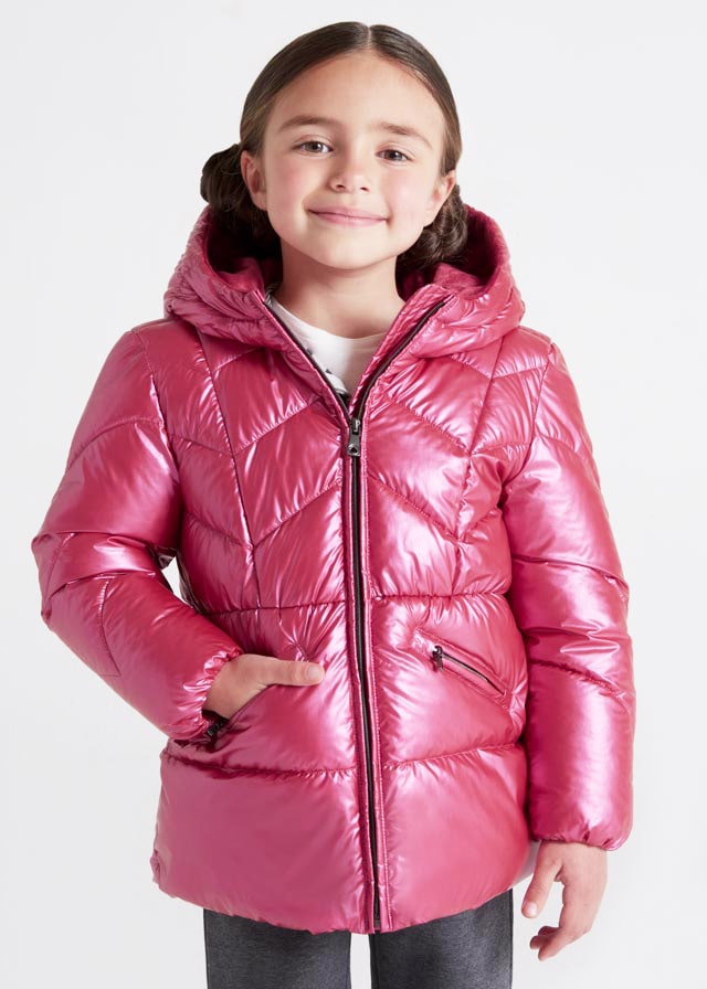 Κοριτσίστικο μακρύ μπουφανάκι από την εταιρία Mayoral σε φούξια χρώμα το οποίο έχει κουκούλα και άνοιγμα με φερμουάρ. Διαθέτει ενισχυμένη επένδυση και έχει επίσης δύο τσεπούλες που ανοίγουν και αυτές με φερμουάρ. Είναι ιδανικό για τις κρύες βόλτες!