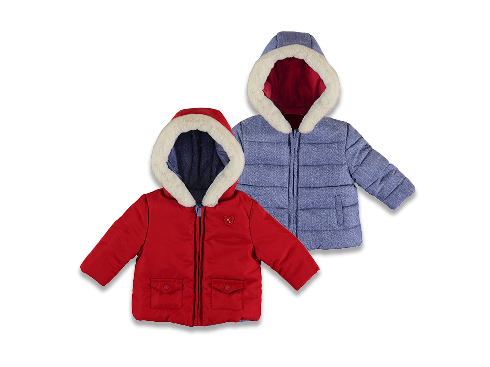 Αγορίστικο μπουφανάκι από την εταιρία Mayoral το οποίο έχει κουκούλα και άνοιγμα με φερμουάρ. Διαθέτει επένδυση και η κουκούλα του έχει γούνα. Το μπουφάν αυτό είναι διπλής όψης ( double-fast ) και τα χρώματα του είναι μπλε και κόκκινο και είναι ιδανικό για τις κρύες βόλτες!