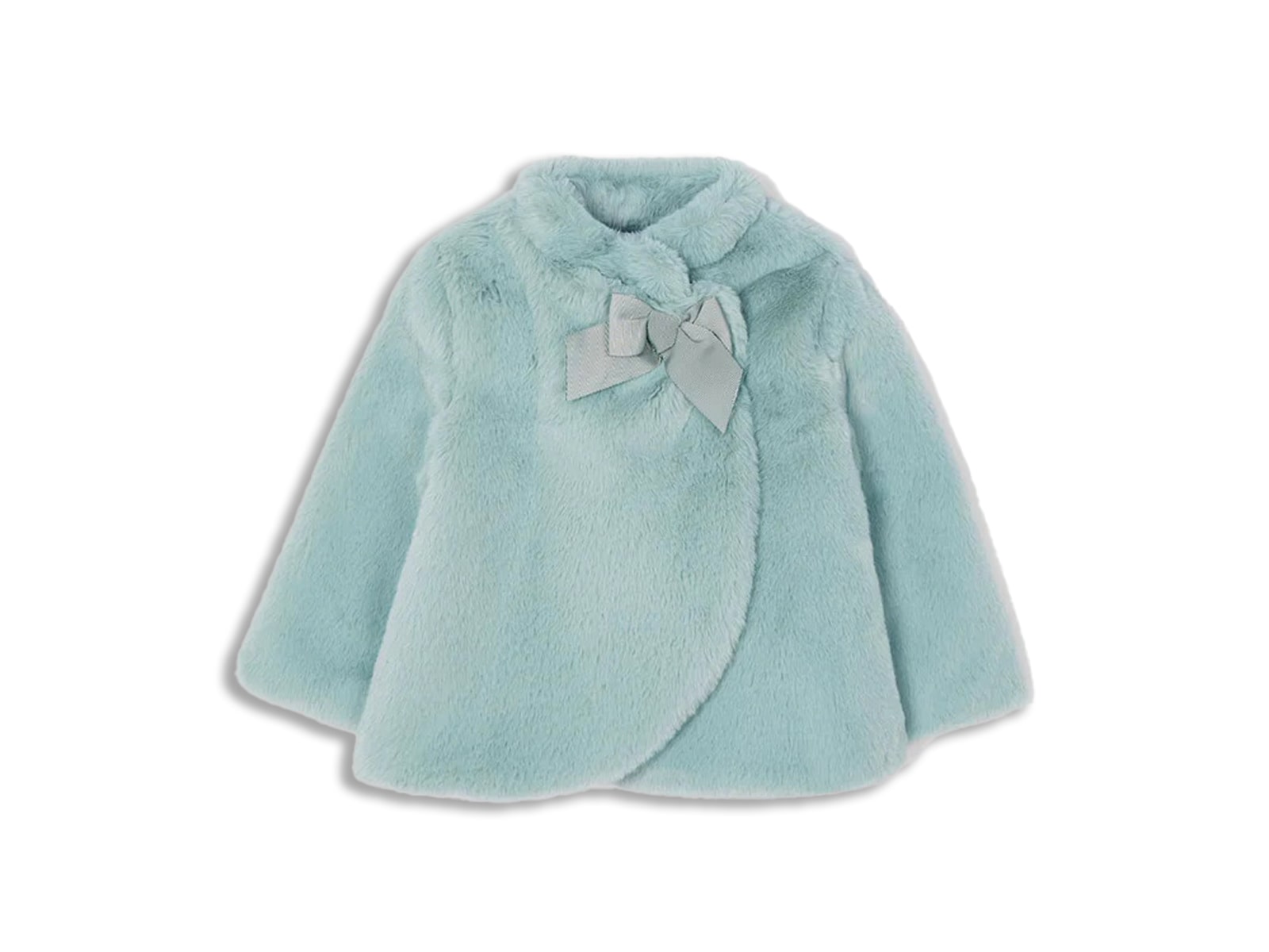 Κοριτσίστικο γούνινο παλτό από την εταιρία Mayoral σε τιρκουάζ χρώμα το οποίο διαθέτει έναν μεγάλο φιόγκο και έχει άνοιγμα με κουμπάκια. Είναι ιδανικό για να απογειώσει το στυλ του κοριτσιού σας!