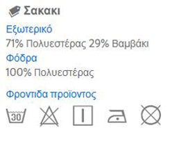 - Ακολουθήστε τις οδηγίες στο καρτελάκι και τα σύμβολα με τις οδηγίες πλυσίματος.