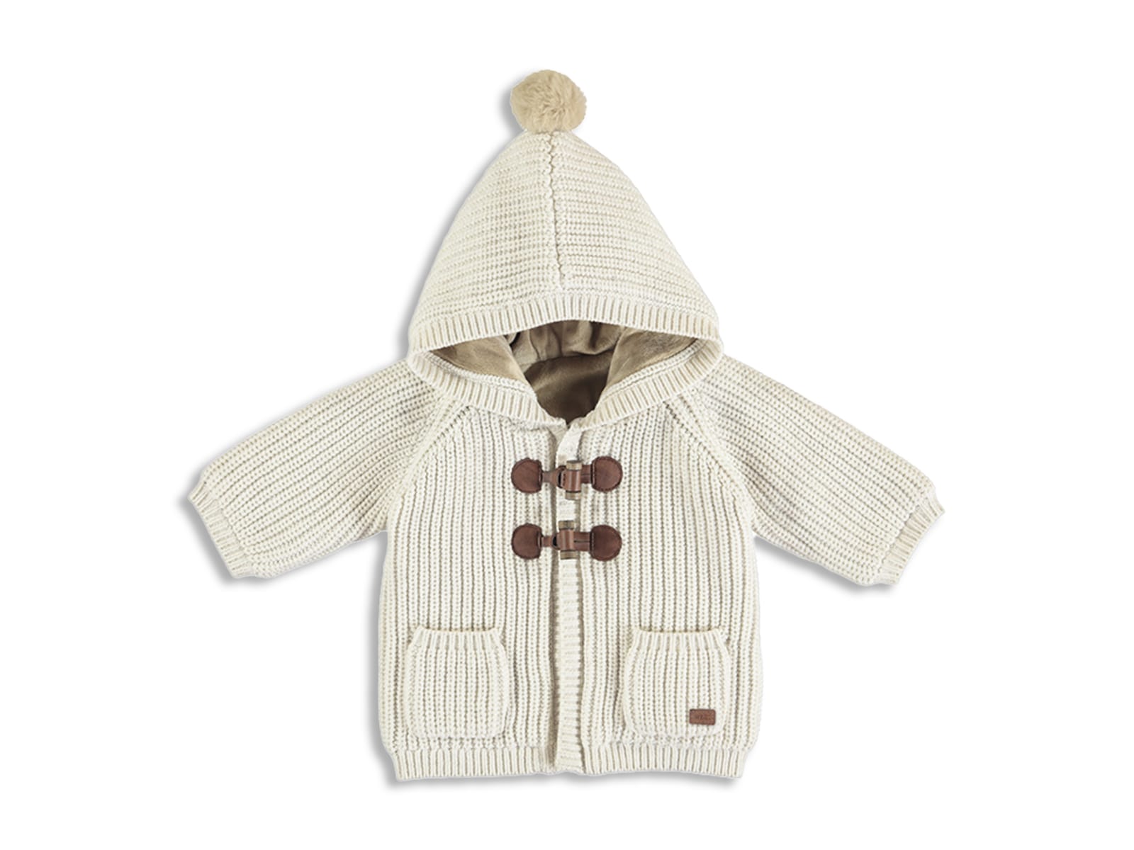 Πλεκτή γούνινη ζακετούλα με κουκούλα από την εταιρία Mayoral σε μπεζ χρώμα. Η ζακέτα είναι τύπου μοντγκόμερυ ( Montgomery ), έχει δύο τσεπούλες και άνοιγμα με φερμουάρ. Έχει ενισχυμένη γούνινη επένδυση και στην κουκούλα έχει και φουντίτσα. Είναι ιδανικό για να απογειώσει το στυλ του παιδιού σας!