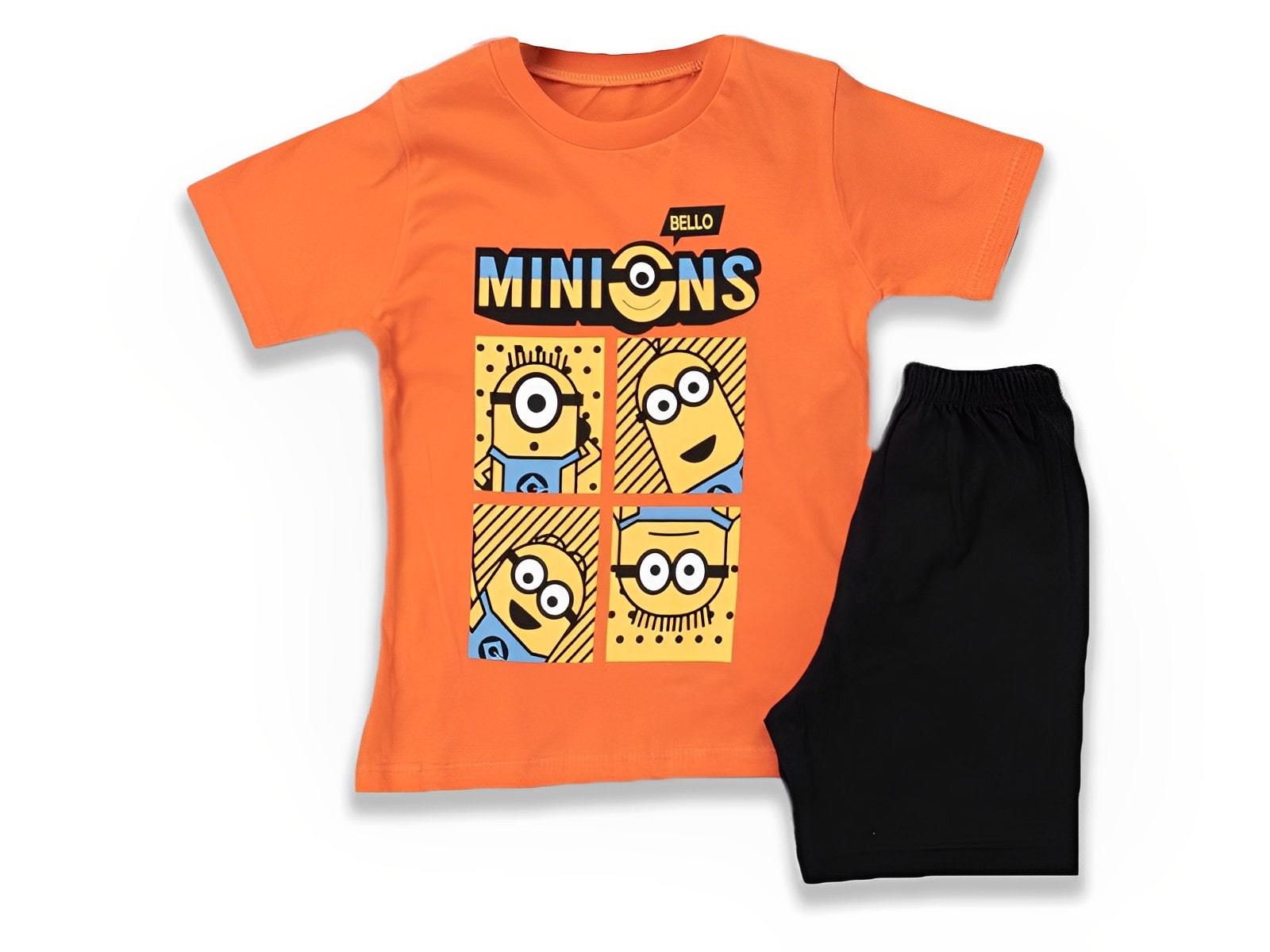 Το σετ αυτό αποτελείται από μία κοντομάνικη μπλουζίτσα και ένα παντελονάκι. Η μπλουζίτσα είναι σε πορτοκαλί χρώμα και έχει ήρωες κινουμένων σχεδίων. Το σορτσάκι είναι σε μαύρο χρώμα και έχει λάστιχο περιμετρικά στη μέση.