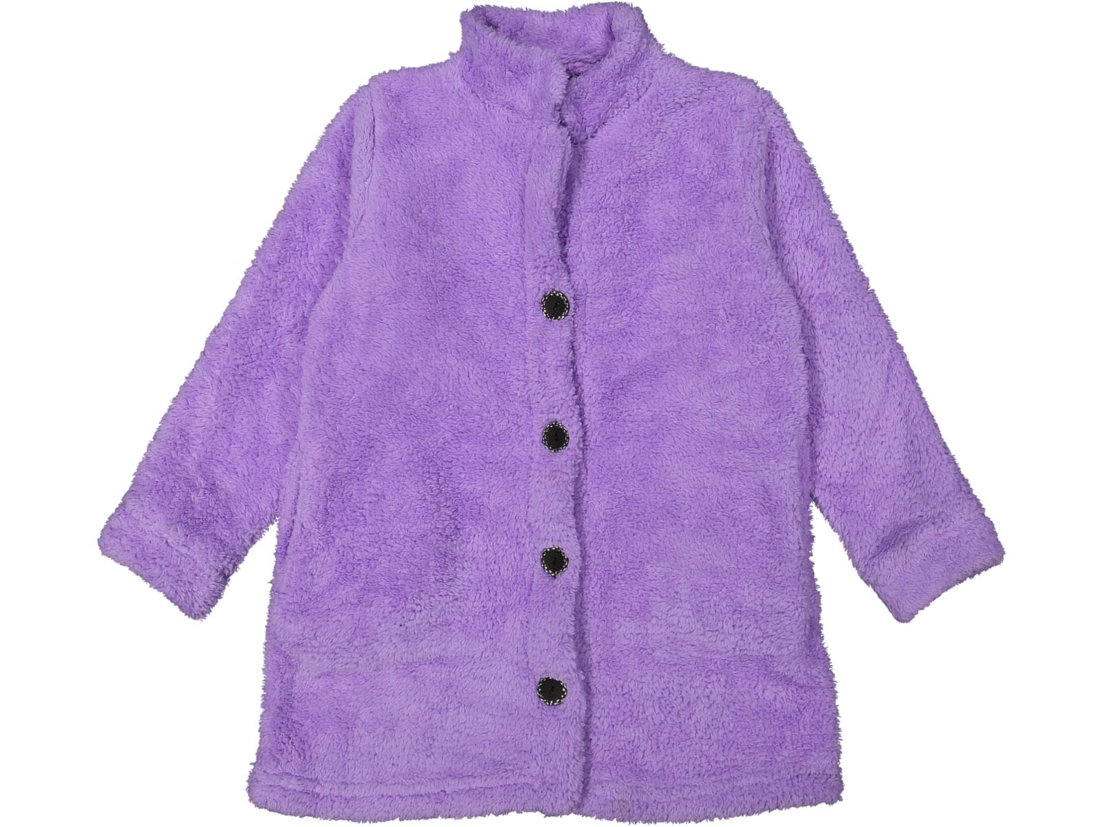 Παιδική ζακέτα fleece (φλις) με τσεπούλες σε μωβ χρώμα. Είναι ανοιχτό στο λαιμό και έχει κλείσιμο με κουμπιά.