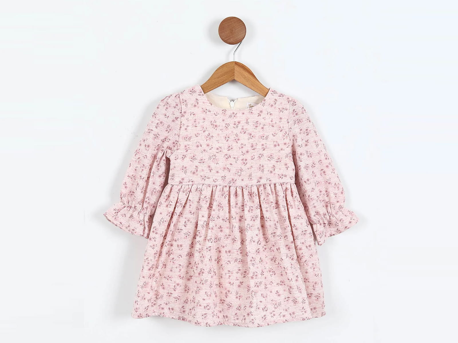 Κομψό και ρομαντικό παιδικό φόρεμα σε απόχρωση πούδρα με floral (φλοράλ) μοτίβο, ιδανικό για ξεχωριστές εμφανίσεις όλη την διάρκεια της ημέρας. Το φόρεμα διαθέτει μακρύ μανίκι και γραμμή που ανοίγει απαλά από τη μέση και κάτω, δημιουργώντας άνεση για το κοριτσάκι. Συνοδεύεται από αποσπώμενο γούνινο γιλέκο σε πούδρα απόχρωση, εξαιρετικά απαλό στην υφή. Κλείνει μπροστά με κομψή κονκάρδα-καρφίτσα με λουλουδάκια και κορδόνι, που λειτουργεί τόσο ως πρακτικό κούμπωμα όσο και ως ιδιαίτερη διακοσμητική λεπτομέρεια. Ο προσεγμένος σχεδιασμός του συνδυάζει άνεση, ζεστασιά και κομψότητα, προσφέροντας ένα ολοκληρωμένο σύνολο.