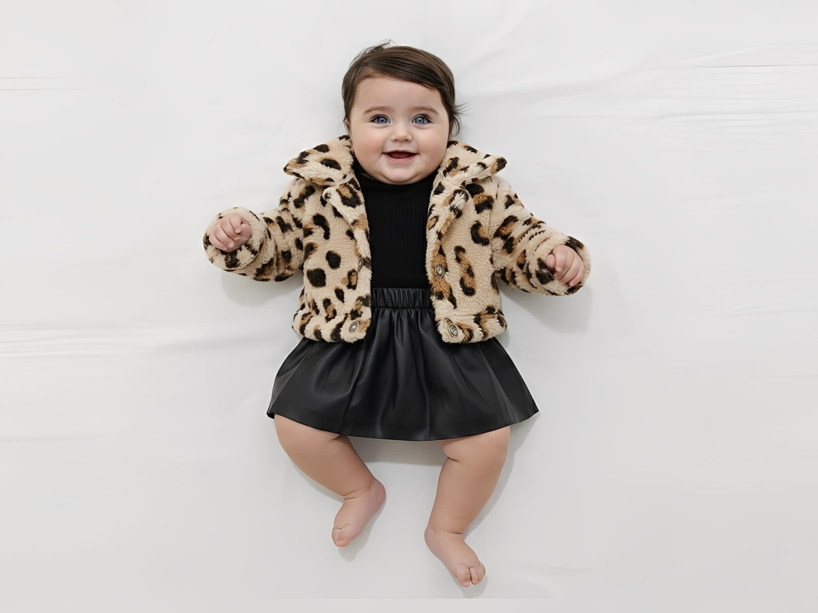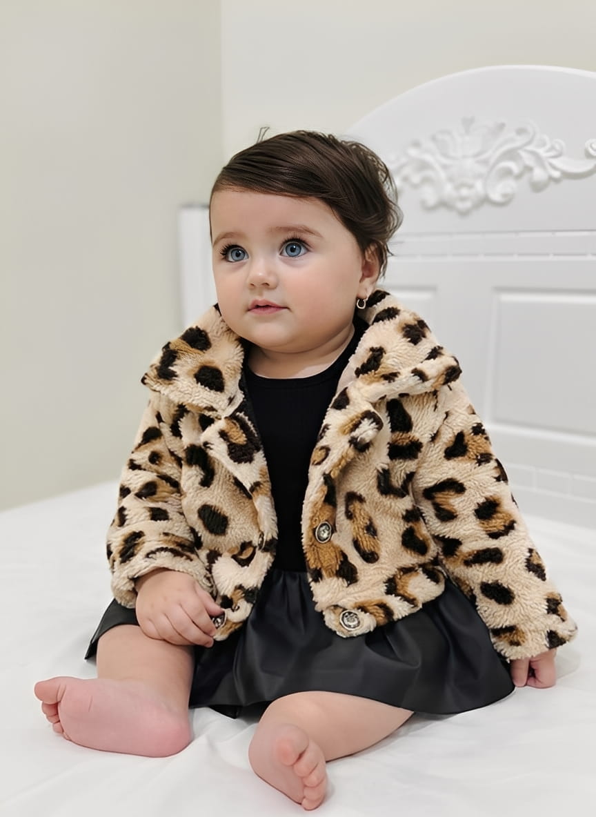 Εντυπωσιακό παιδικό σετ που συνδυάζει στυλ και άνεση, ιδανικό για ξεχωριστές εμφανίσεις από το πρωί έως το βράδυ. Το σετ αποτελείται από μεσάτο animal print γούνινο ζακετάκι, το οποίο είναι ιδιαίτερα ζεστό και έχει κλείσιμο με κουμπάκια. Μαύρη μακρυμάνικη μπλουζίτσα με στρογγυλή λαιμόκοψη και πολύ καλής ποιότητας φούστα δερματίνης σε μαύρο χρώμα με λάστιχο περιμετρικά στην μέση για άνεση, δημιουργώντας ένα μοντέρνο και fashion αποτέλεσμα.