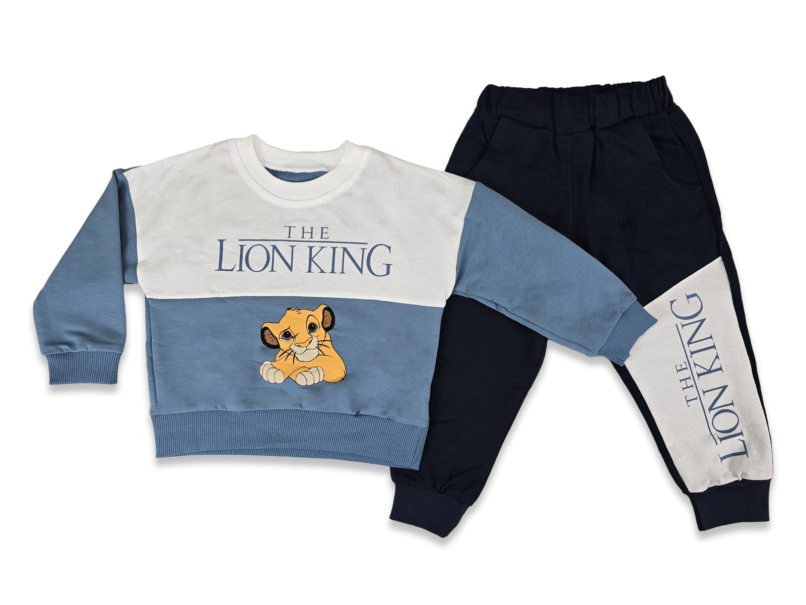 Σετ φόρμες από λεπτό φούτερ ύφασμα, το οποίο αποτελείται από παιδική μπλούζα και παντελόνι. Η μπλούζα είναι σε μπλε και άσπρο χρώμα και έχει σχέδιο στάμπα ήρωα κινουμένων σχεδίων. Το παντελόνι είναι σε σκούρο μπλε χρώμα, ενώ έχει και λάστιχο περιμετρικά στη μέση και στο κάτω μέρος.