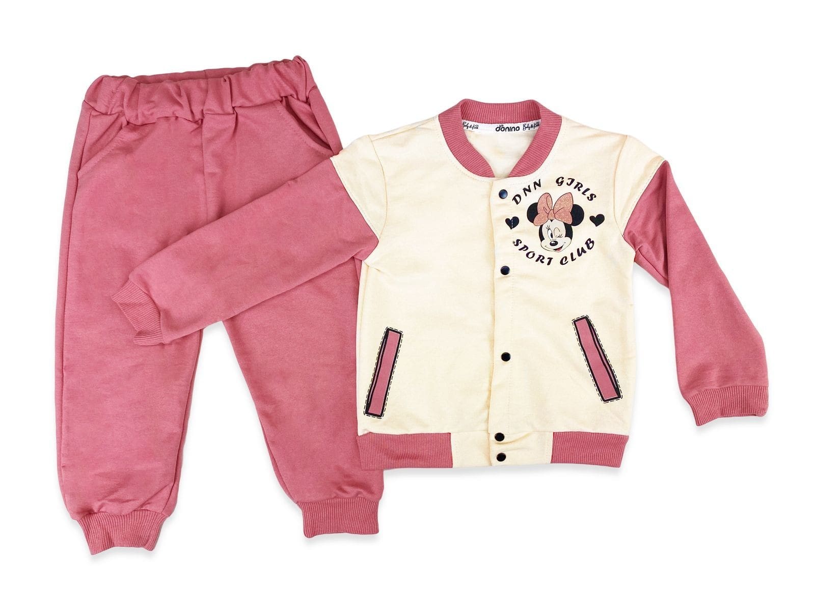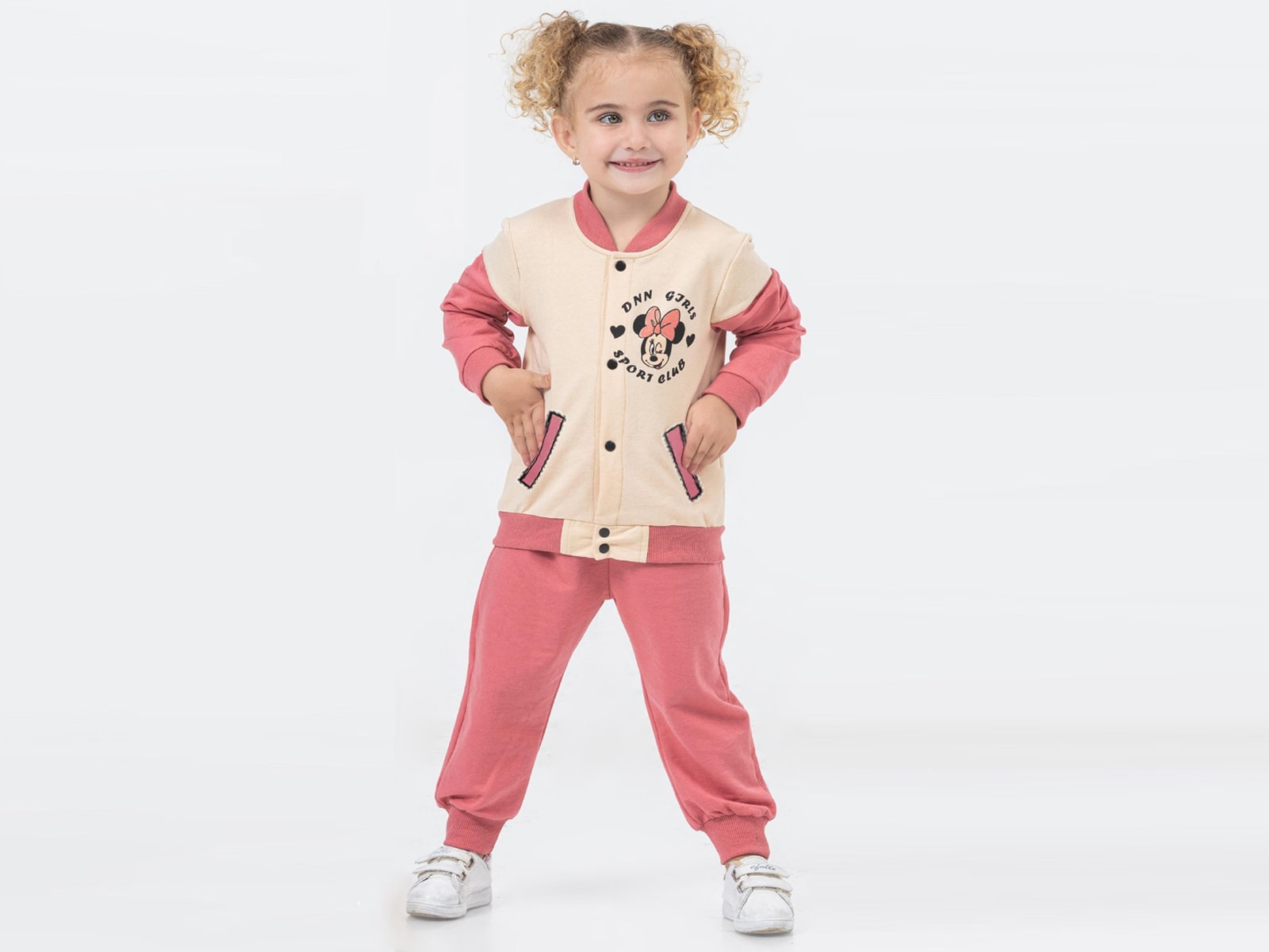 Σετ φόρμες από λεπτό φούτερ ύφασμα, το οποίο αποτελείται από παιδική ζακέτα και παντελόνι. Η ζακέτα είναι σε μπεζ χρώμα με μανίκια σε κοραλί χρώμα και έχει σχέδιο στάμπα ήρωες κινουμένων σχεδίων και άνοιγμα με τρουκς ( κόπιτσες ) και επίσης έχει σχέδιο 2 τσέπες, δεξιά και αριστερά. Το παντελόνι είναι σε κοραλί χρώμα με 2 κανονικές τσέπες, ενώ έχει και λάστιχο περιμετρικά στη μέση και στο κάτω μέρος.