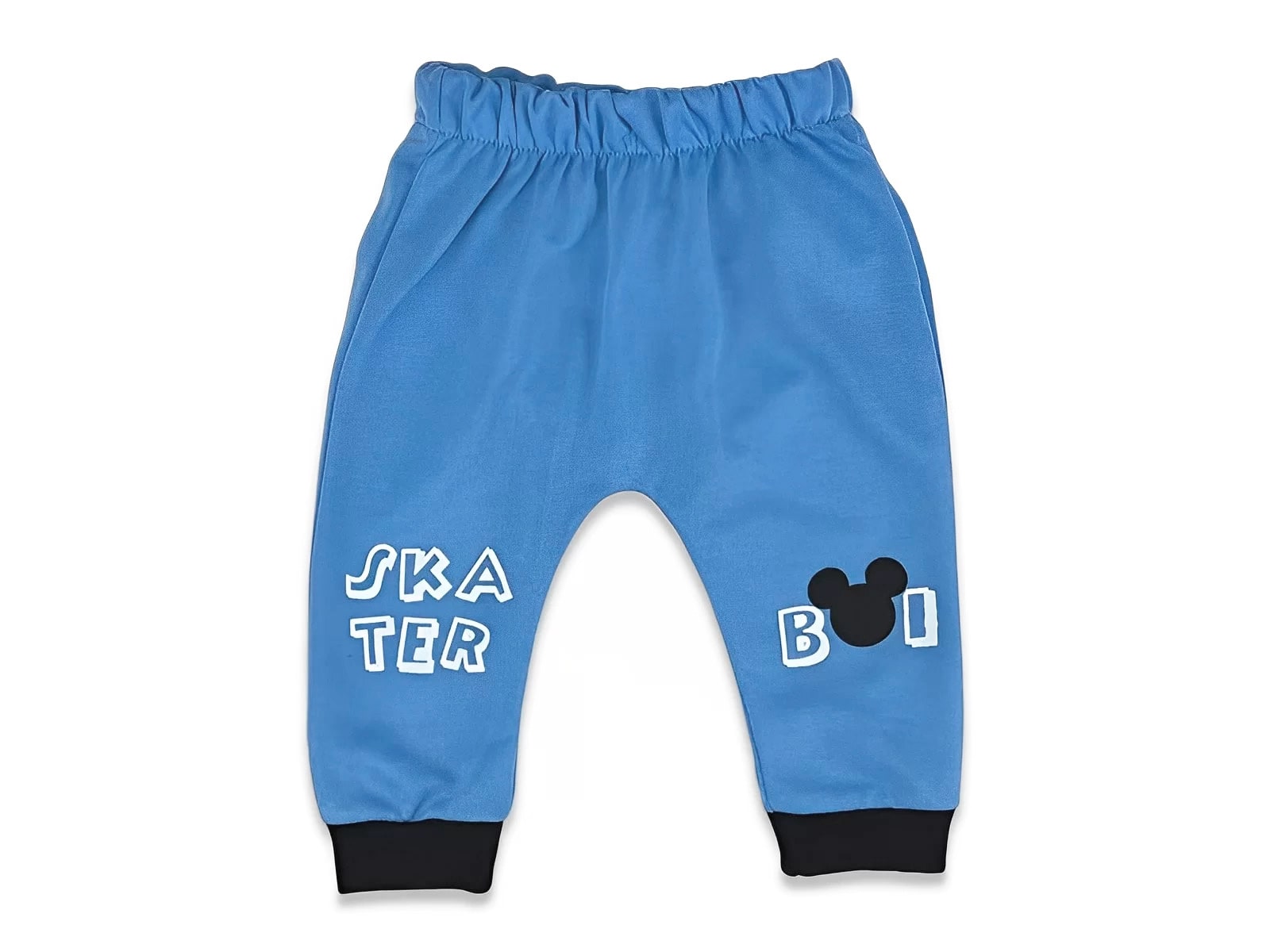 Το σετ αποτελείται από μπλουζίτσα και παντελονάκι. Η μπλούζα είναι σε μπλε χρώμα, με σχέδιο στάμπα ήρωα κινουμένων σχεδίων και γράφει “Skater Boi”. Το παντελονάκι είναι σε μπλε χρώμα και έχει λάστιχο περιμετρικά στη μέση και στο κάτω μέρος.