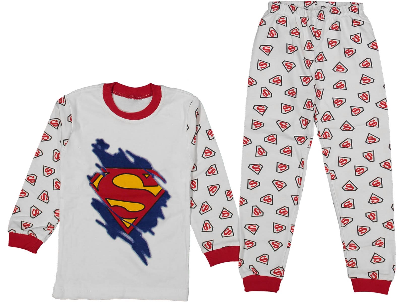 Το σετ αυτό αποτελείται από μπλουζίτσα και παντελονάκι. Η μπλούζα είναι σε άσπρο χρώμα και έχει σχέδιο στάμπα το σήμα υπερήρωα κινουμένων σχεδίων. Το παντελονάκι είναι σε άσπρο χρώμα με λάστιχο περιμετρικά στη μέση και στους αστραγάλους.
