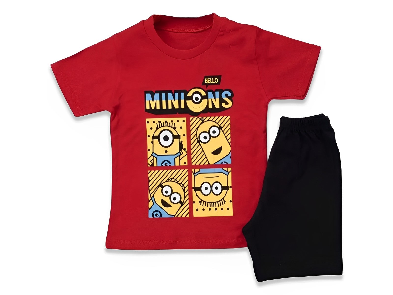 Το σετ αυτό αποτελείται από μία κοντομάνικη μπλουζίτσα και ένα παντελονάκι. Η μπλουζίτσα είναι σε κόκκινο χρώμα και έχει ήρωα κινουμένων σχεδίων. Το σορτσάκι είναι σε μαύρο χρώμα και έχει λάστιχο περιμετρικά στη μέση.