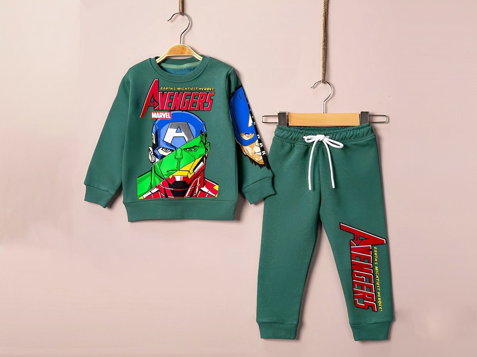 Παιδικό Σετ Χοντρές Φόρμες Φούτερ, Μπλούζα και Παντελόνι με Υπερήρωα Κινουμένων Σχεδίων – Πράσινο (ΣΠΑΙ-95900)