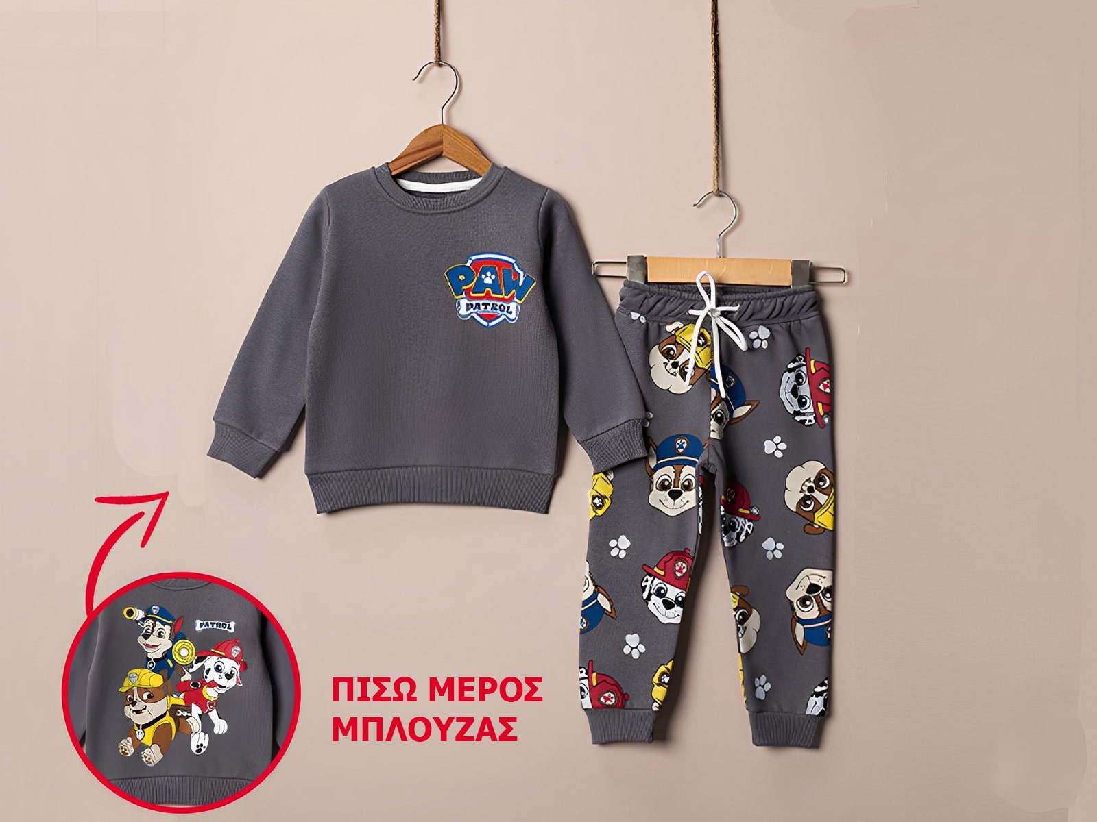 Παιδικό Σετ Χοντρές Φόρμες Φούτερ, Μπλούζα και Παντελόνι με Ήρωα Κινουμένων Σχεδίων – Γκρι (ΠΑΤΡ-95799)