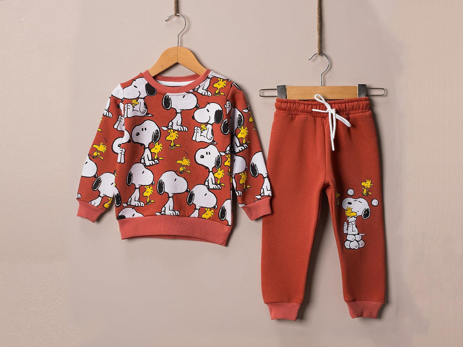 Παιδικό Σετ Χοντρές Φόρμες Φούτερ, Μπλούζα και Παντελόνι με Ήρωα Κινουμένων Σχεδίων – Κεραμιδί (ΣΝΟΥ-95716)