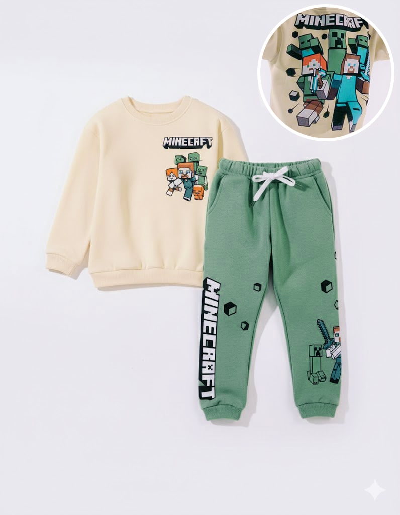 - 👕 Μπλούζα: Μακρυμάνικη σε μπεζ χρώμα με στρογγυλή λαιμόκοψη και εντυπωσιακή στάμπα με το αγαπημένο παιχνίδι των μικρών παιδιών