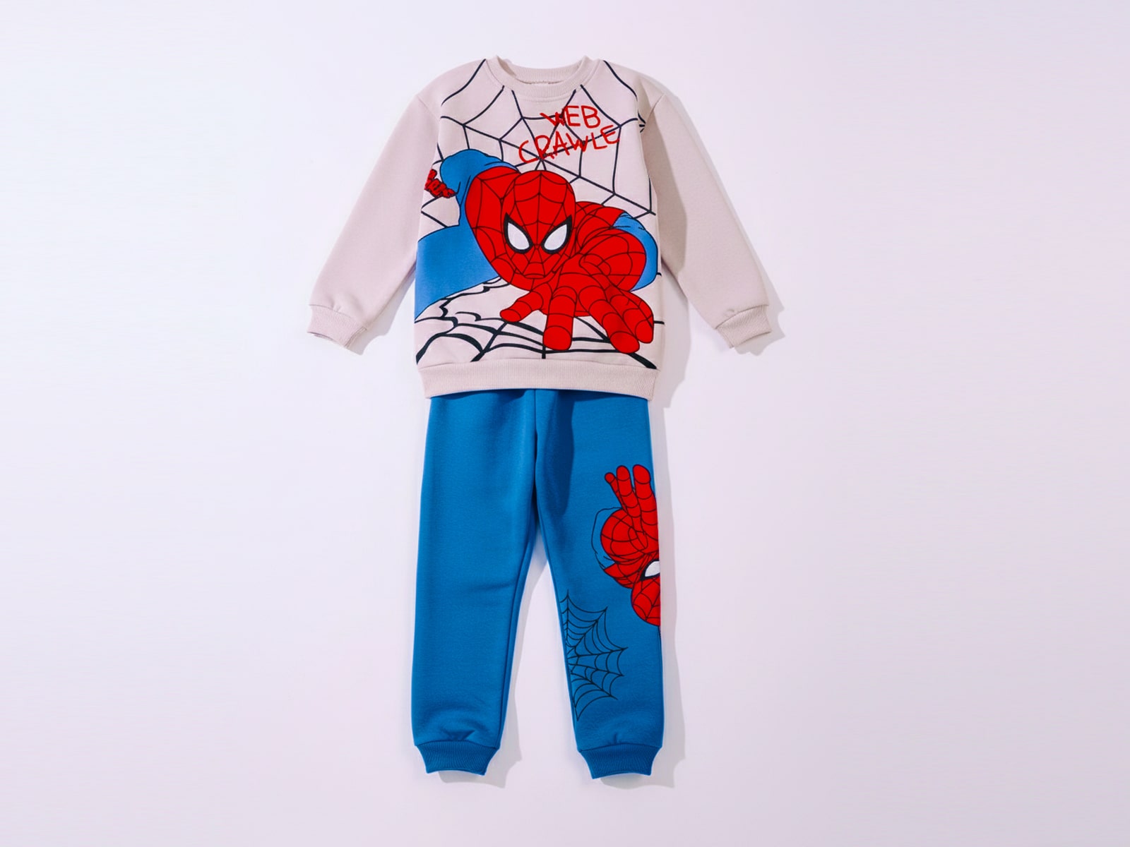 - 👕 Μπλούζα: Μακρυμάνικη σε μπεζ χρώμα με στρογγυλή λαιμόκοψη και εντυπωσιακή στάμπα με τον αγαπημένο υπερήρωα των μικρών παιδιών