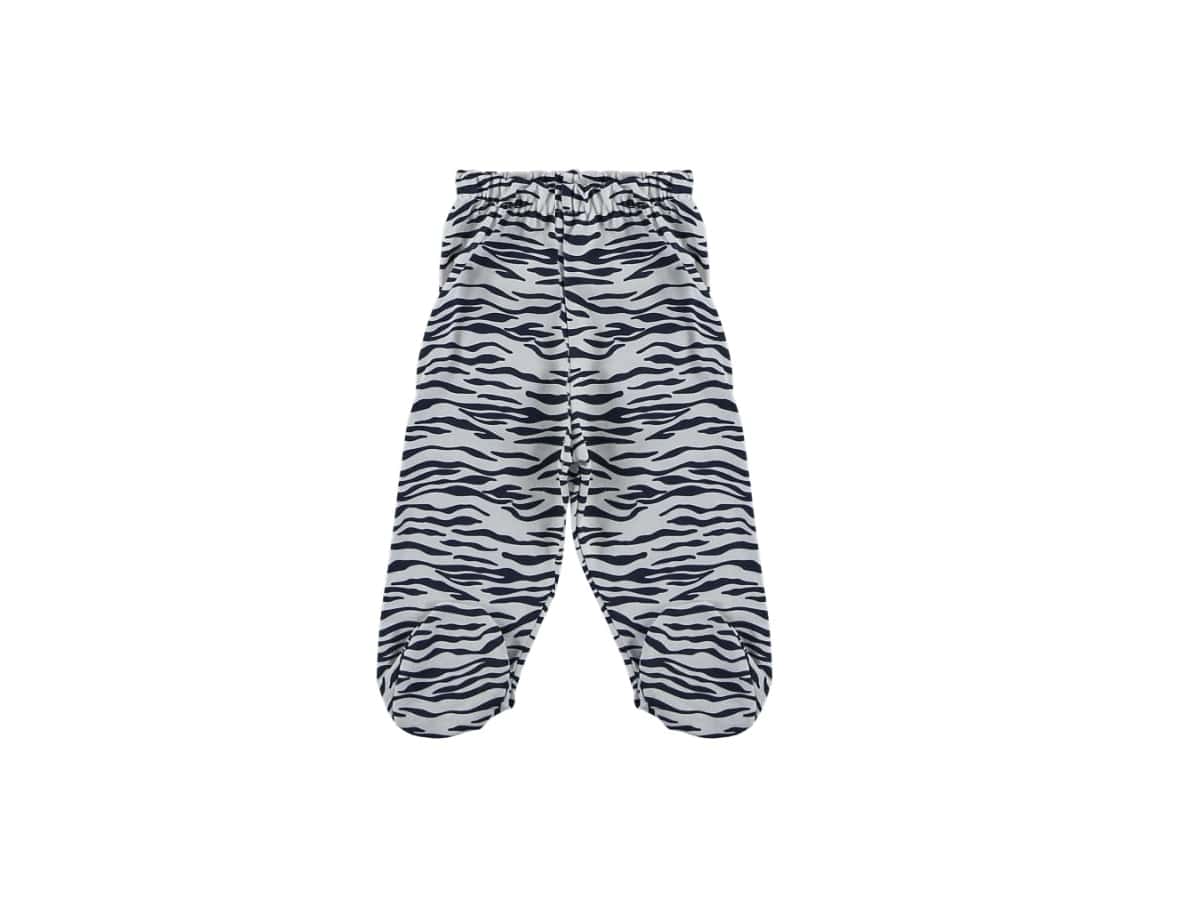 Το παντελονάκι έχει σχέδιο ζέβρα και λάστιχο περιμετρικά στη μέση, ενώ έχει και κλειστά ποδαράκια.