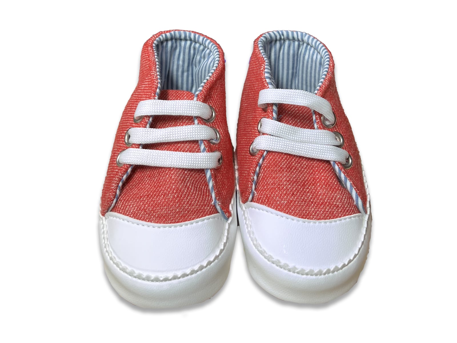 Παπουτσάκια Αγκαλιάς Τζιν με Κορδονάκια Κεραμιδί