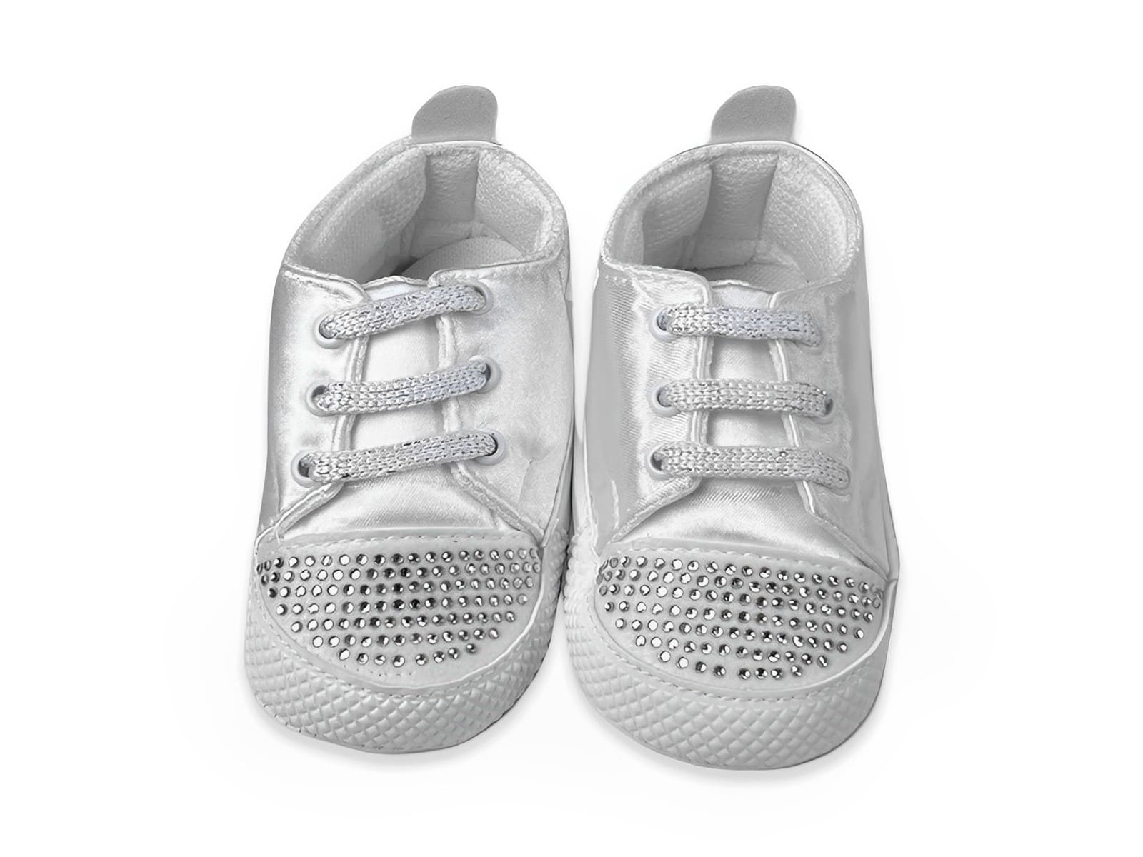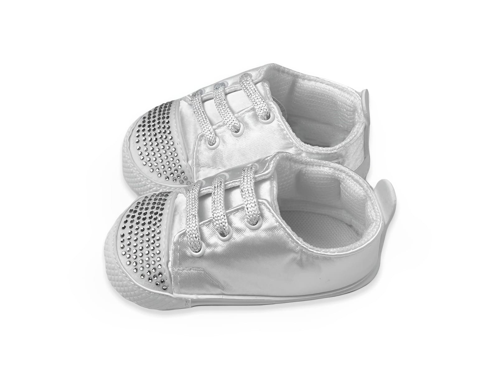 Παπουτσάκια Βρεφικά Αγκαλιάς με Κορδονάκια και Τρουκς – Ασημί (70580)