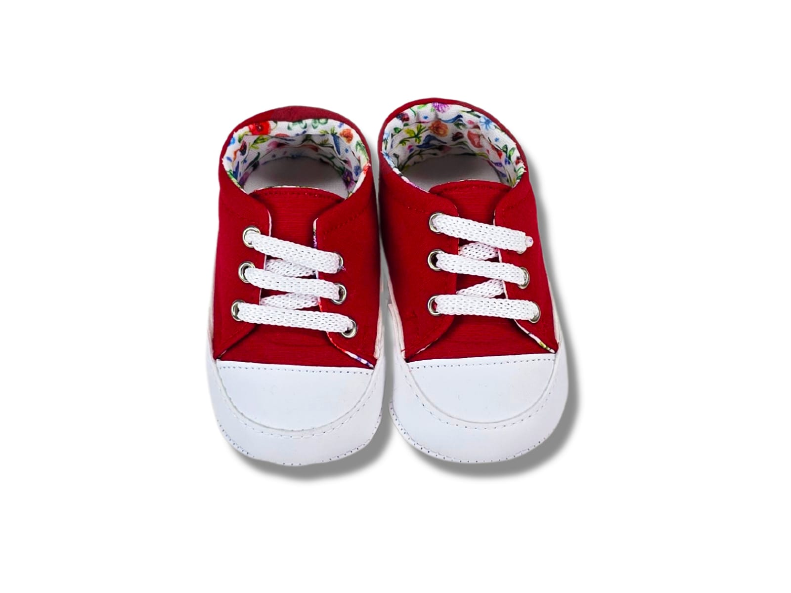 Βρεφικά παπουτσάκια αγκαλιάς με κορδονάκια σε κόκκινο χρώμα και σχέδιο εσωτερικά. Ιδανικά για να προστατεύουν τα πόδια των μικρών μας φίλων!