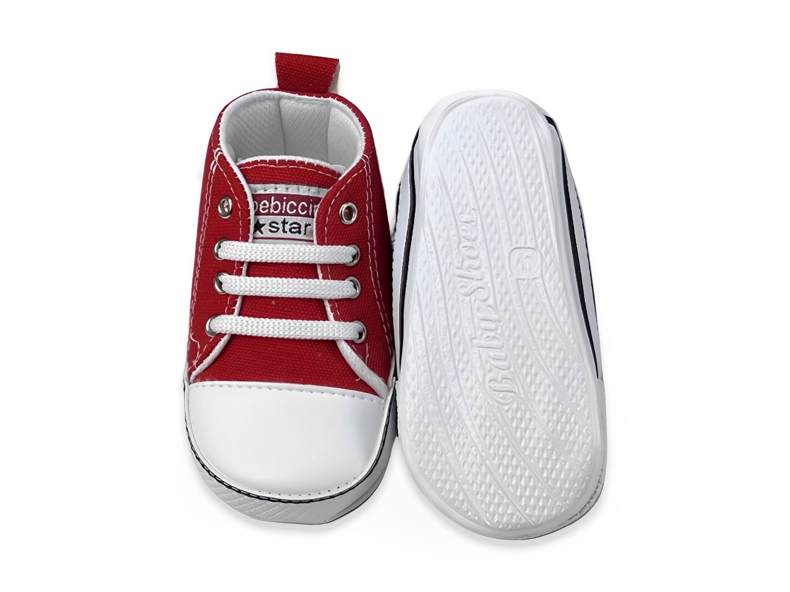 Παπουτσάκια Βρεφικά Αγκαλιάς με Κορδονάκια “Star” – Κόκκινα (70558)