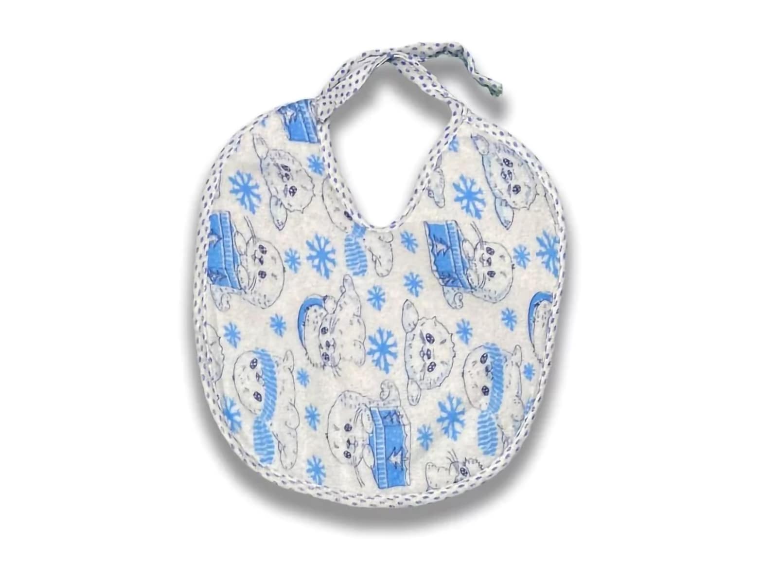 Σαλιάρα μικρή (19 εκ.) σε μπλε χρώμα. Οι σαλιάρες έχουν διάφορα σχεδιάκια και ενδέχεται να διαφέρουν από το σχέδιο της φωτογραφίας.