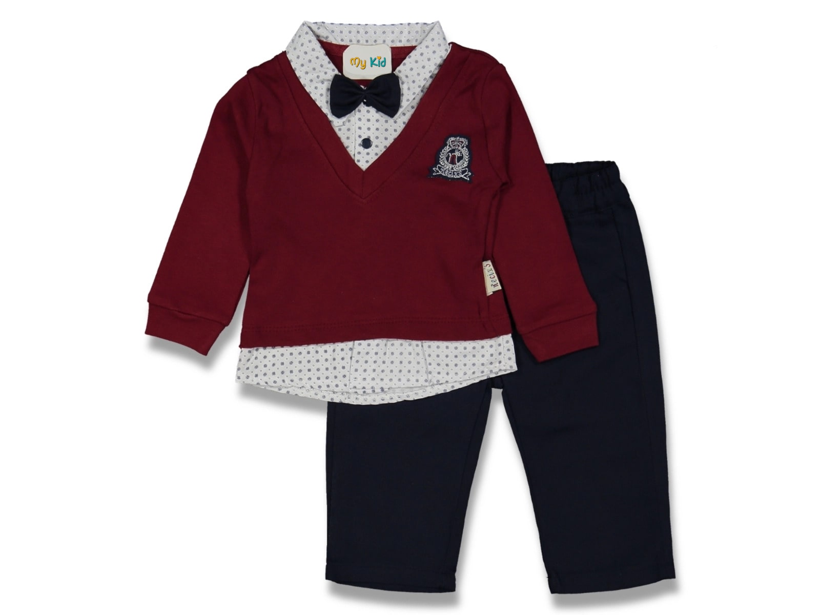 Σετ Εξόδου με Μπλουζίτσα Ενιαία με Πουκαμισάκι και Παπιγιόν και Παντελονάκι Καμπαρντινέ Μπορντό