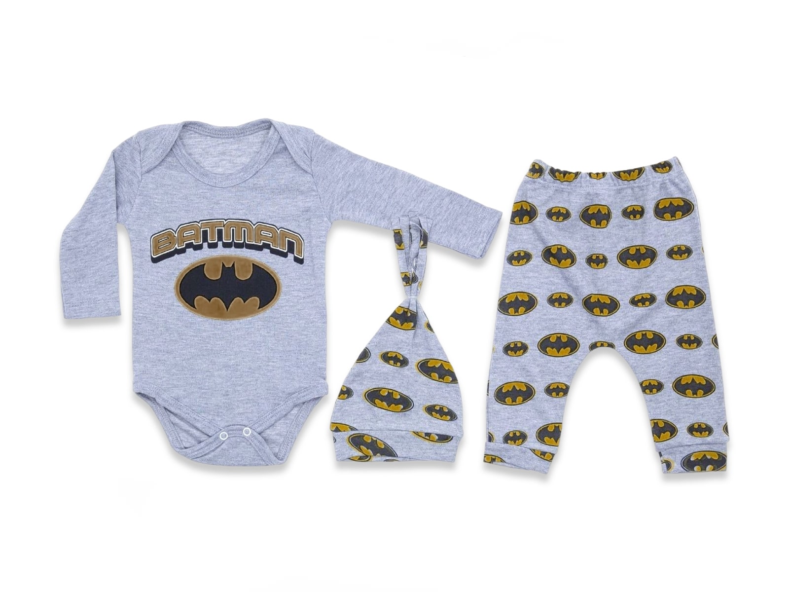 Βρεφικό Σετ Κορμάκι, Παντελονάκι και Σκουφάκι με Υπερήρωα – Γκρι (68511)