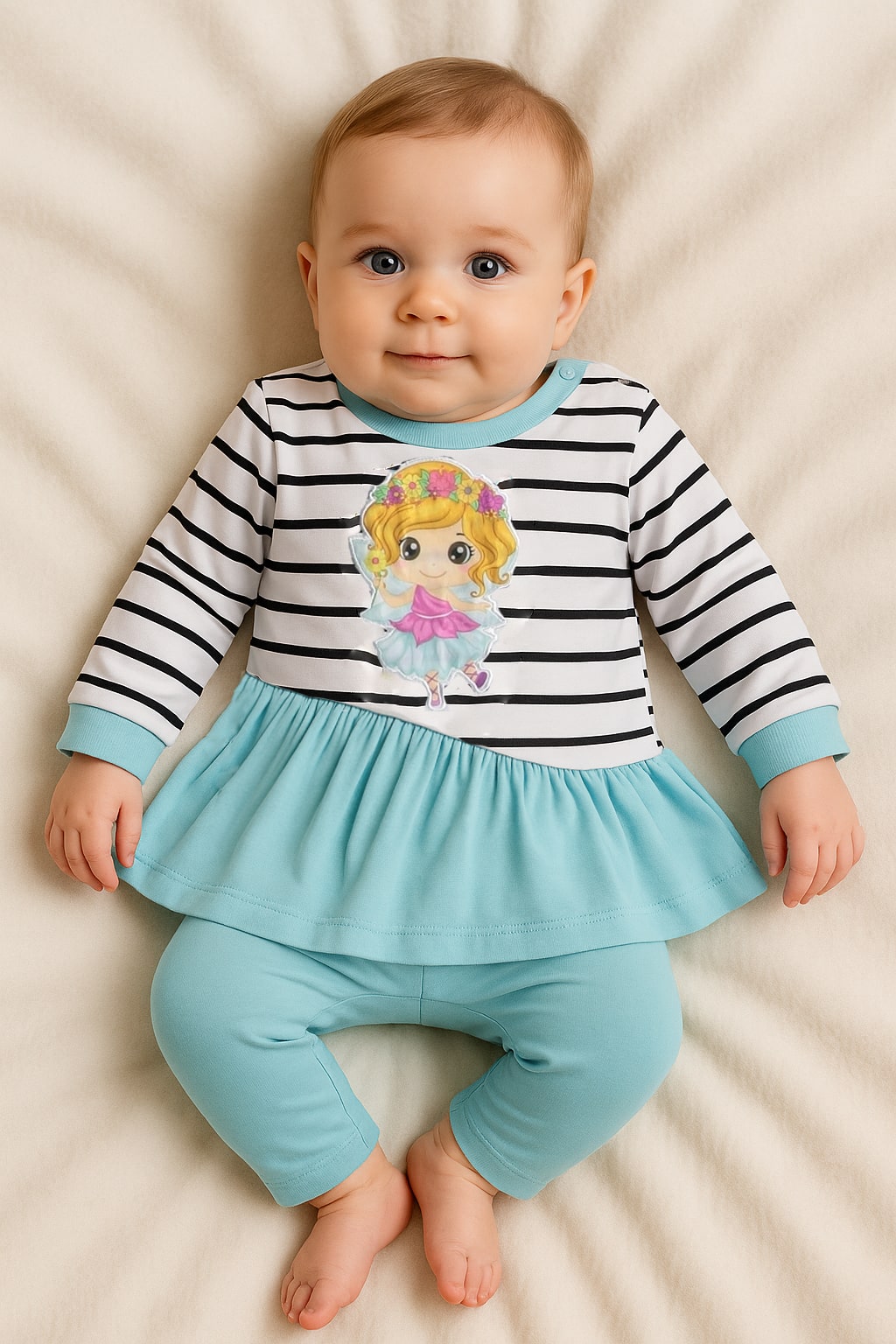 Σετ Μπλουζοφόρεμα και Παντελονάκι με Σχέδιο Ρίγες και Νεράιδα Βεραμάν