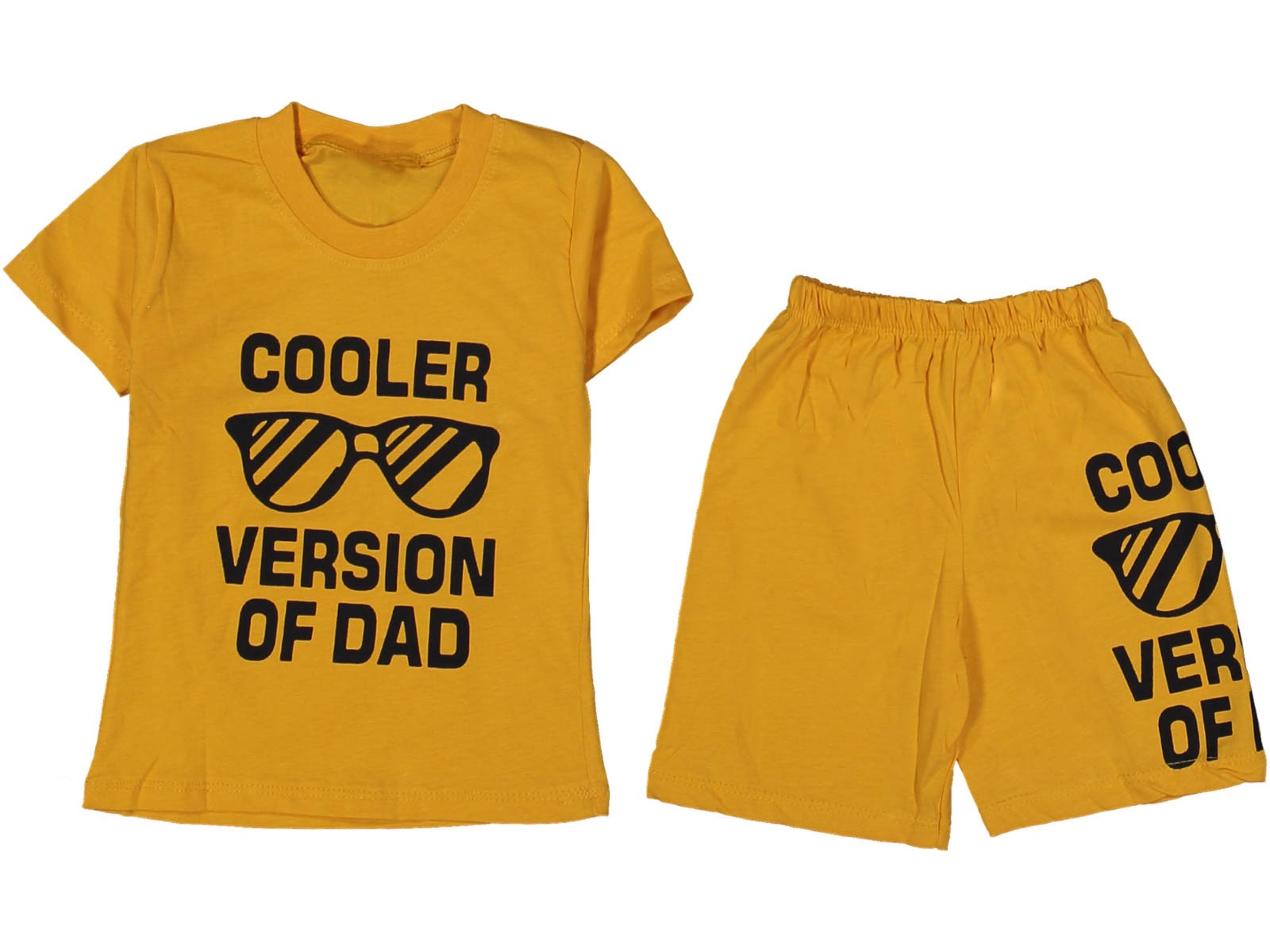 Το σετ αυτό αποτελείται από μία κοντομάνικη μπλουζίτσα και ένα παντελονάκι. Η μπλουζίτσα είναι σε κίτρινο χρώμα και έχει σχέδιο στάμπα που γράφει “Cooler Version of Dad”. Η βερμούδα είναι σε κίτρινο και έχει στάμπα που γράφει “Cooler Version of Dad”, ενώ έχει λάστιχο περιμετρικά στη μέση.