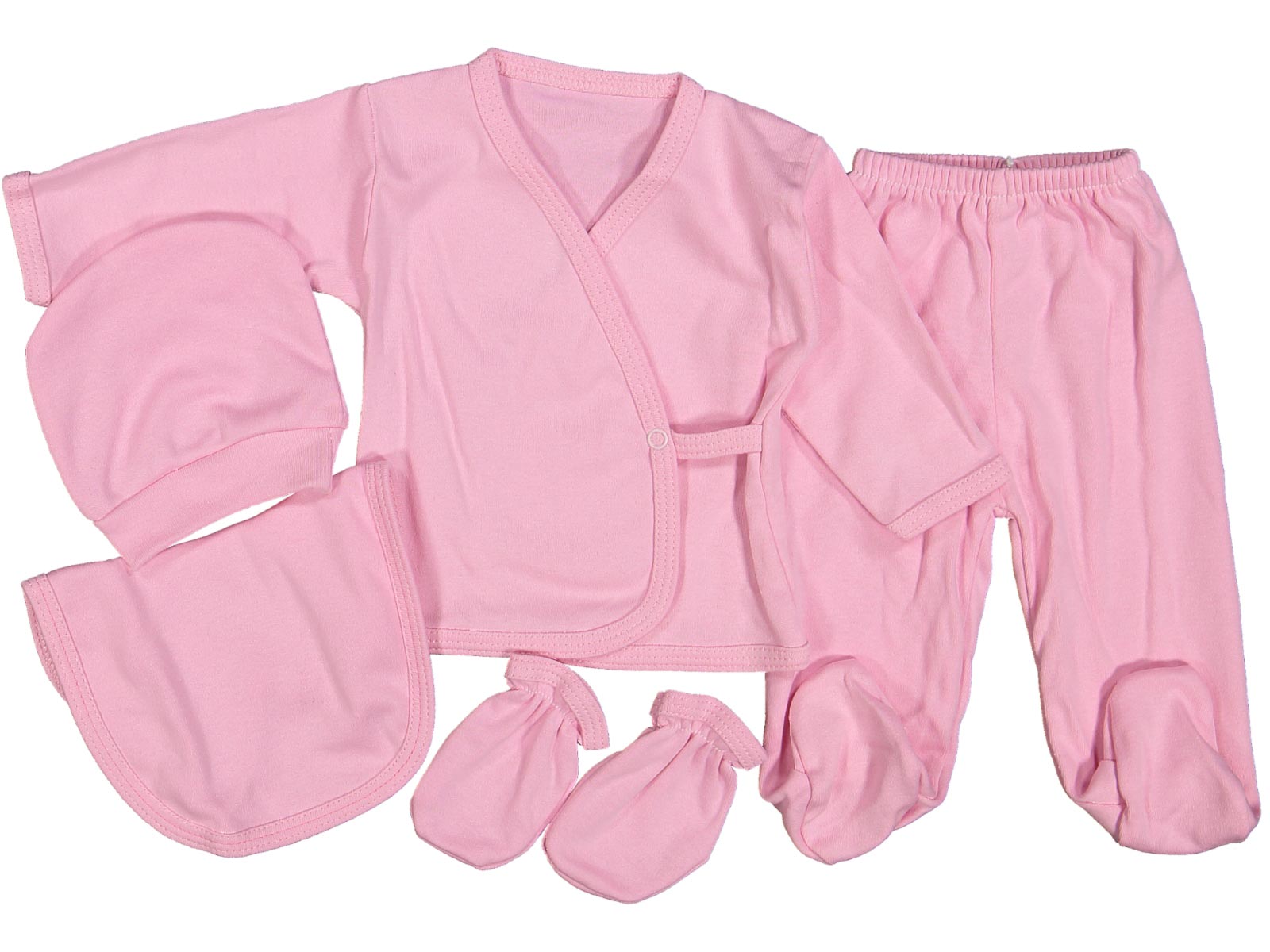 Σετ Πιτζαμάκι 5 Κομμάτια με Ζακετάκι, Παντελονάκι, Σκουφάκι, Γαντάκια και Σαλιάρα Μονόχρωμο Ροζ