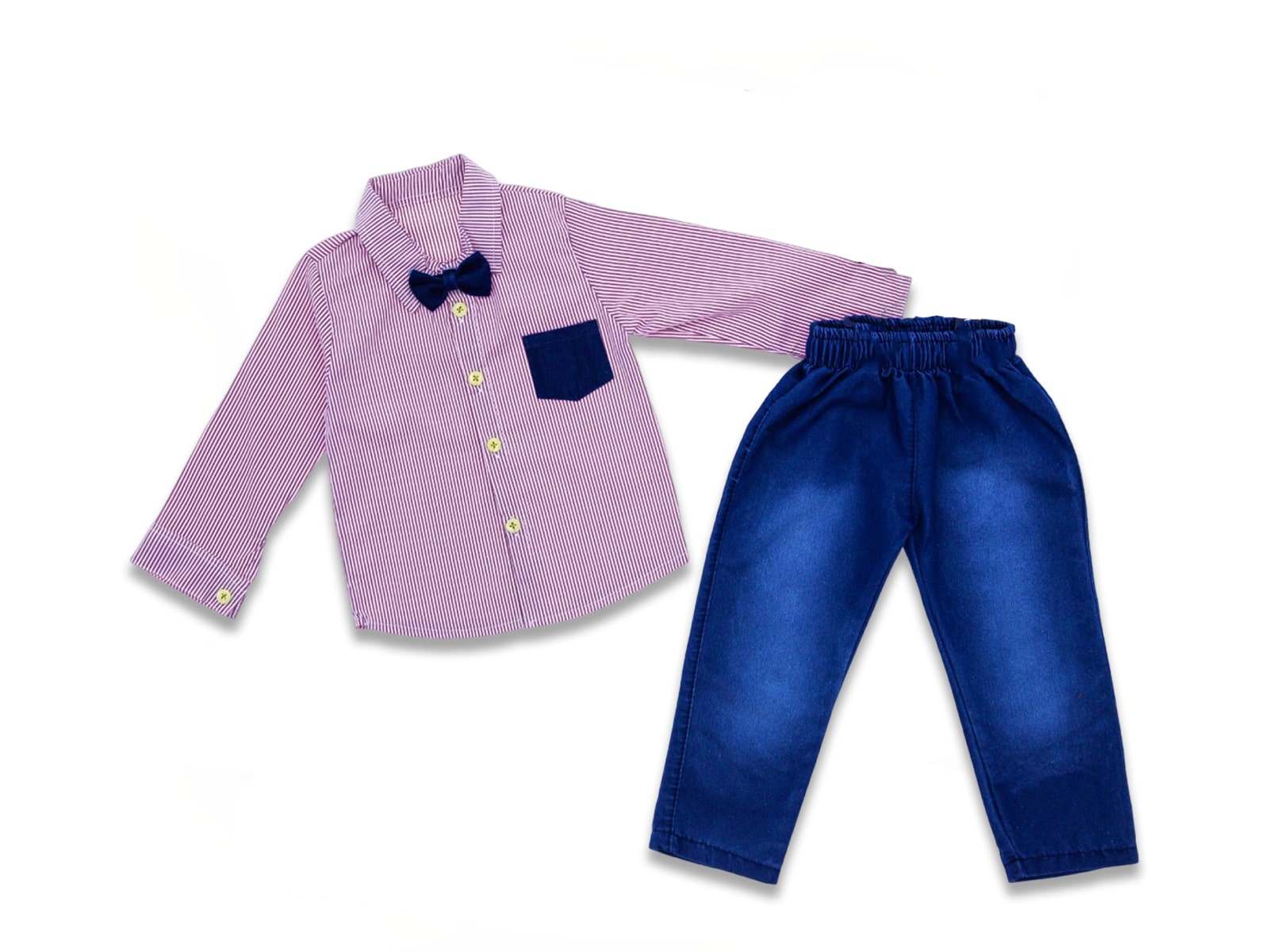 Σετ Πουκάμισο με Ριγέ Σχέδιο, Τζιν Παντελόνι και Παπιγιόν