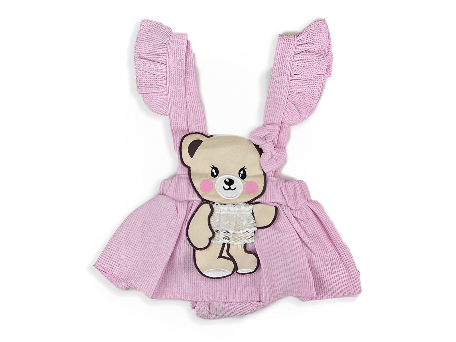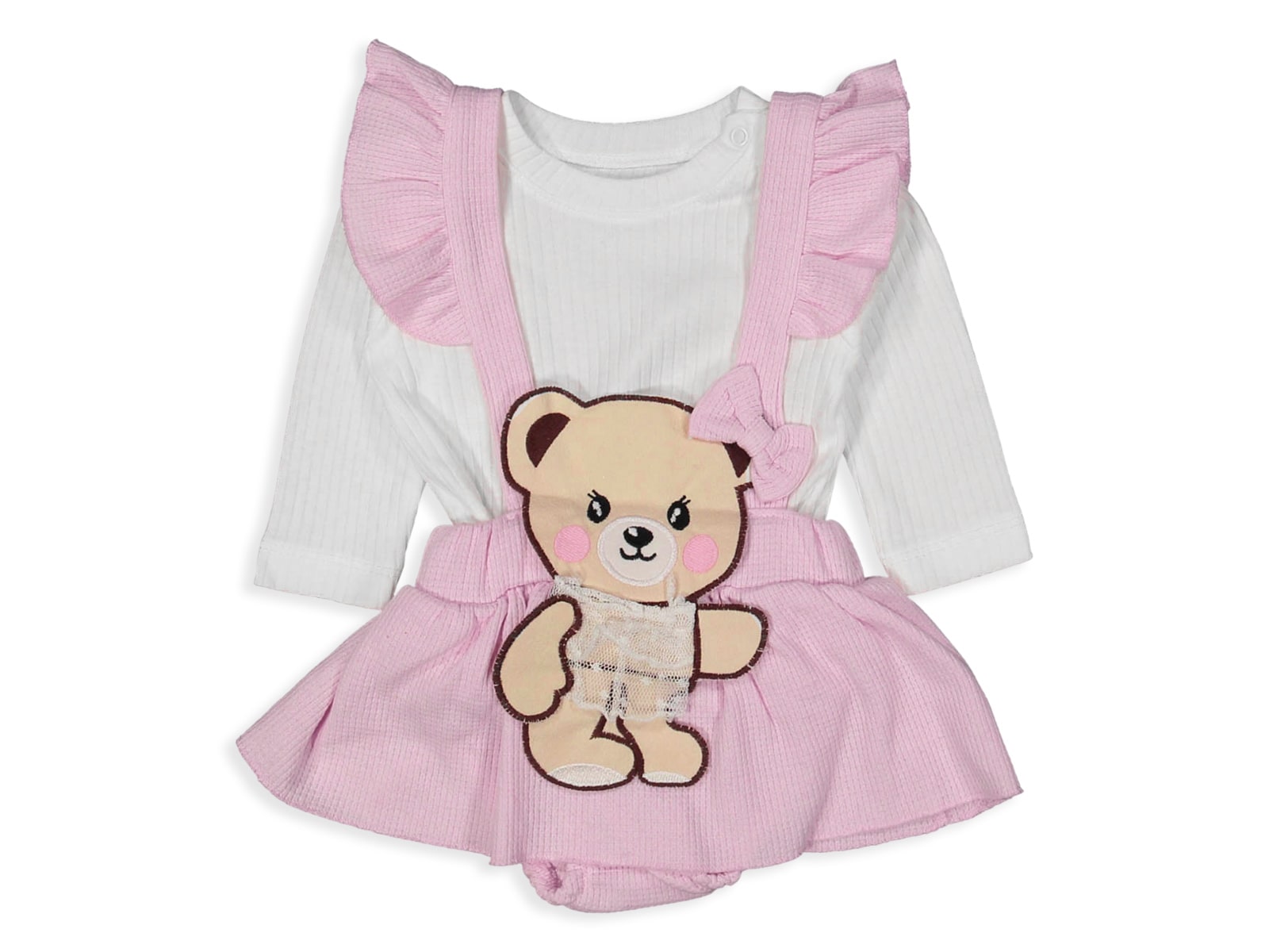 Βρεφική Φούστα Σαλοπέτα με Κάλυμμα Πάνας Βρακάκι και Μακρυμάνικη Μπλούζα με Σχέδιο Αρκουδάκι – Ροζ (81822)