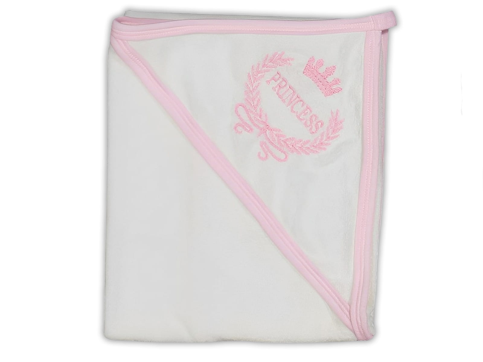 Μπουρνουζοπετσέτα – κάπα μπεμπέ σε λευκό χρώμα. Έχει ροζ λεπτομέρειες και γράφει με κεντητό σχέδιο “Princess” (πριγκίπισσα). Είναι κατασκευασμένη από μαλακό και άνετο ύφασμα κατάλληλο για το δερματάκι των μωρών. Η κουκούλα που διαθέτει, προσφέρει άμεση απορρόφηση της υγρασίας από το κεφάλι. Είναι ιδανική για το μπάνιο των μικρών μας φίλων. Kατάλληλο δώρο για το μαιευτήριο και για νεογέννητα παιδάκια. Διατίθεται σε ένα μέγεθος : One Size (0-1 έτους).