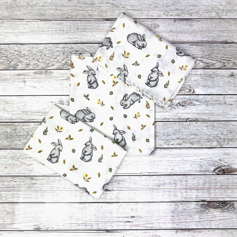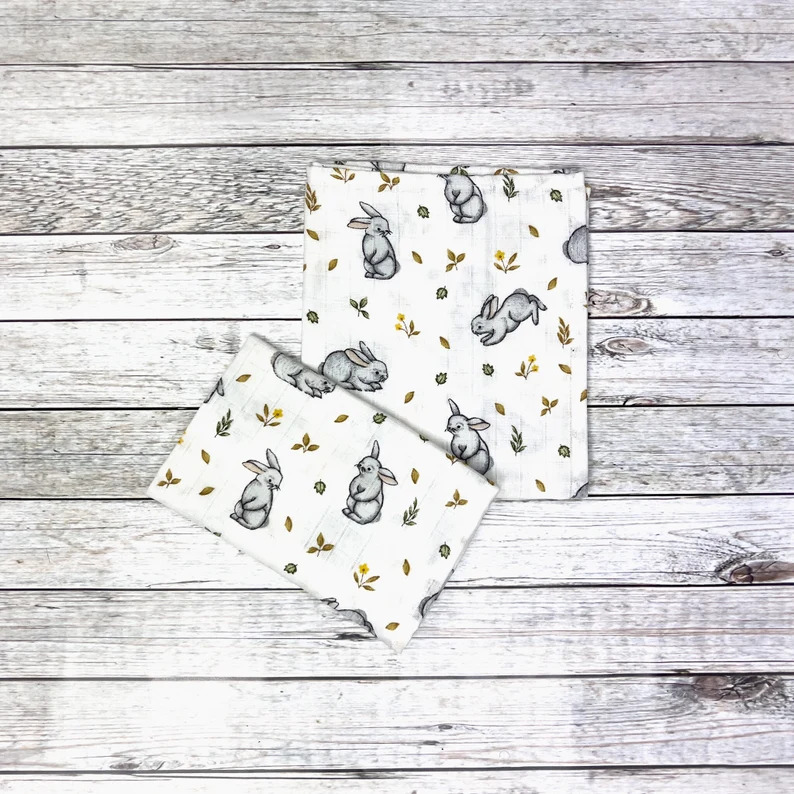 Πάνα αγκαλιάς – καροτσιού η οποία είναι σε άσπρο χρώμα με σχέδιο ζωάκι λαγουδάκι. Είναι κατασκευασμένη από μαλακό και άνετο ύφασμα κατάλληλο για το ευαίσθητο δερματάκι των μωρών. Οι πάνες χρησιμοποιούνται τόσο στη νεογνική όσο και στη βρεφική περίοδο. Λόγω των πλεονεκτημάτων του υλικού, χρησιμοποιείται από τις πρώτες στιγμές της ζωής του παιδιού. Η χρήση τους είναι ευρεία – χρησιμοποιούνται ως κουβερτούλες στις ζεστές περιόδους για τη καθημερινή βόλτα του μωρού αλλά και για σκέπασμα στο λίκνο, ως σεντόνια, και κάλυμα αλλαξιέρας. Διατίθεται σε ένα μέγεθος : One Size (0-2 έτους), με 72×82 εκατοστά.