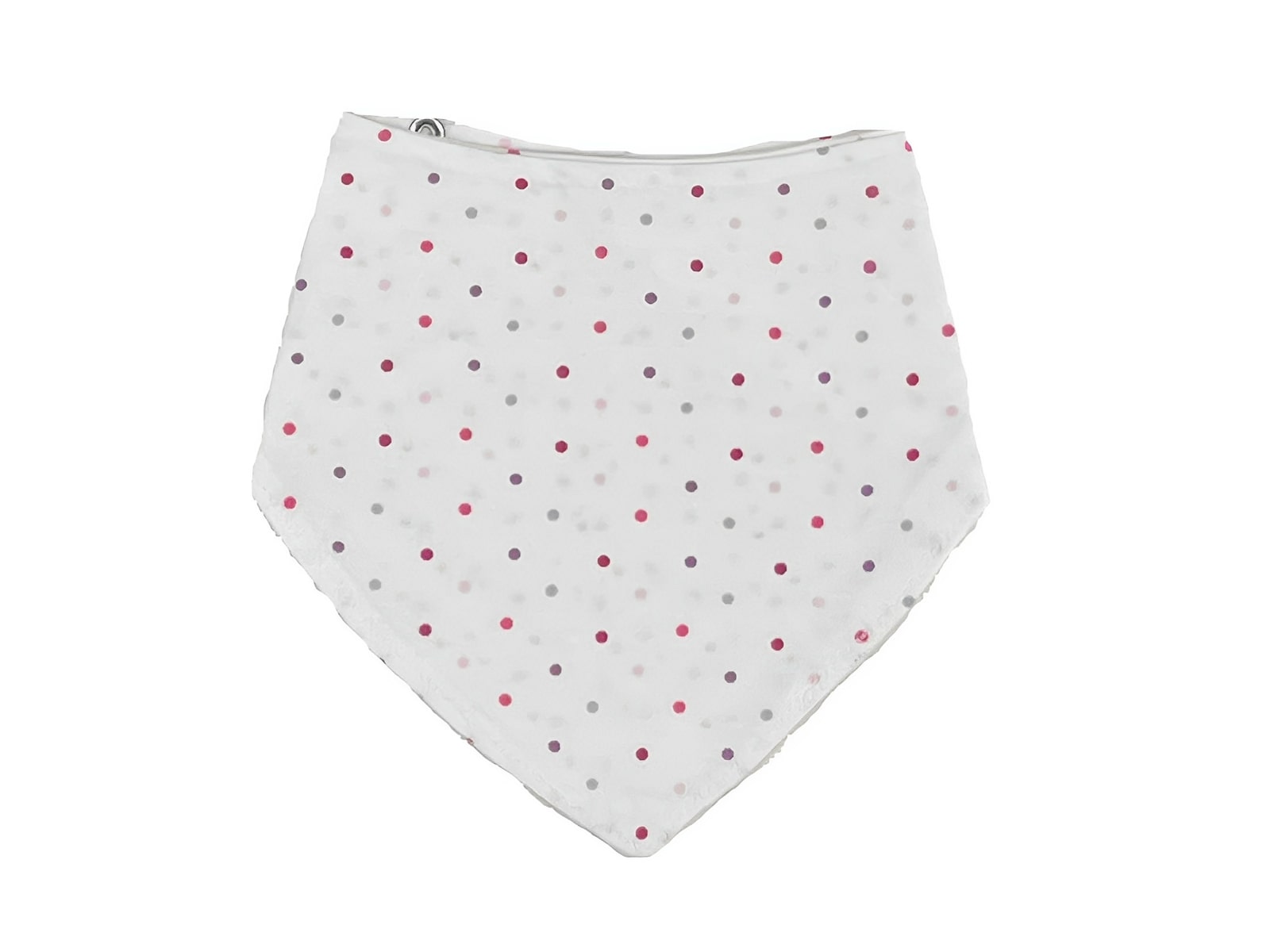 Παιδική σαλιάρα τύπου μπαντάνα σε άσπρο χρώμα με πουά σχέδιο βουλίτσες η οποία έχει κούμπωμα με τρουκς (κουμπάκι) στο πίσω μέρος.
